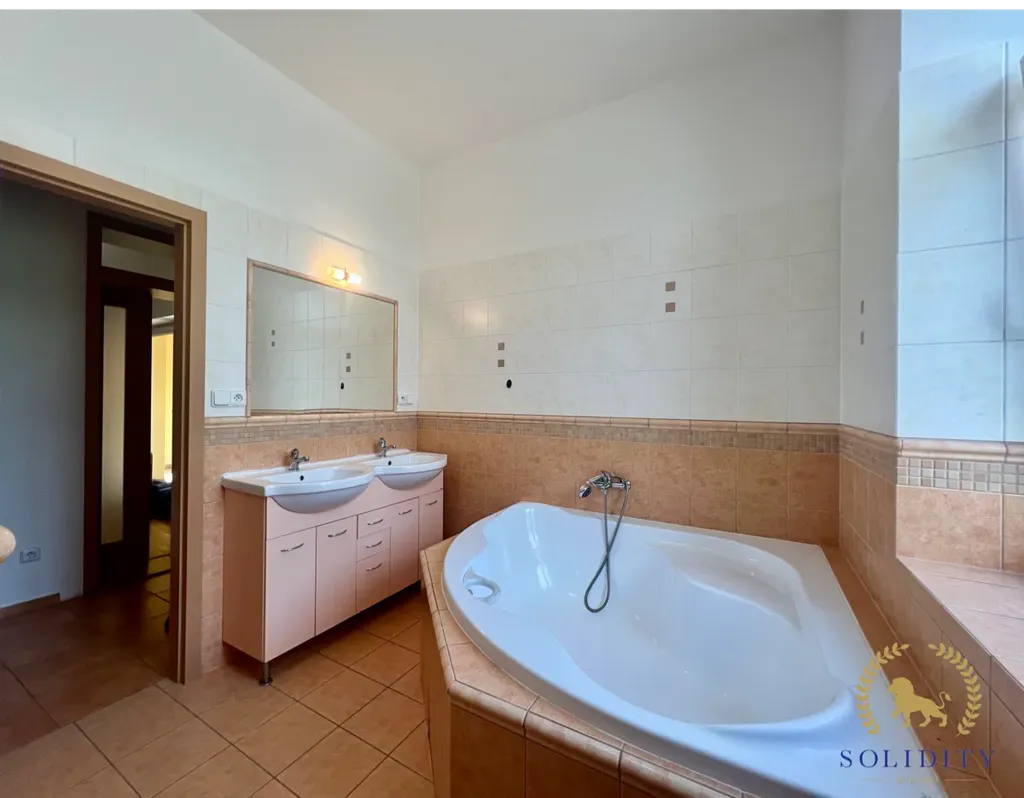S užitnou plochou 182 m2 a podlahovou plochou 255 m2 je prostor v domě efektivně využitý. Dům je vybaven prostorným sklepem o velikosti 34 m2 a nabízí pohodlné parkování, včetně garáže. I když je plocha zahrady 37 m2, její výhodou je snadná údržba při současném bydlení na prestižní adrese v centru obce. Blízkost veškeré dopravní dostupnosti, jako je vlak, dálnice, silnice, MHD a autobus, zajišťuje rychlý a komfortní přístup k okolním službám a lokacím.