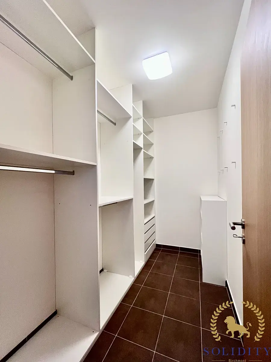 Interiér je navržen s důrazem na kvalitu, funkčnost a nadčasový design. Součástí je kuchyňská linka se spotřebiči, vestavěné úložné systémy na míru, praktická šatna, designové interiérové dveře, jídelní sestava, pohodlná sedací souprava i televize. Koupelna působí elegantně a čistě, navíc zde zůstává pračka se sušičkou, což novému majiteli výrazně usnadní začátek bydlení. Ložnice je ponechána bez vybavení, takže si ji můžete zařídit přesně podle vlastního stylu.