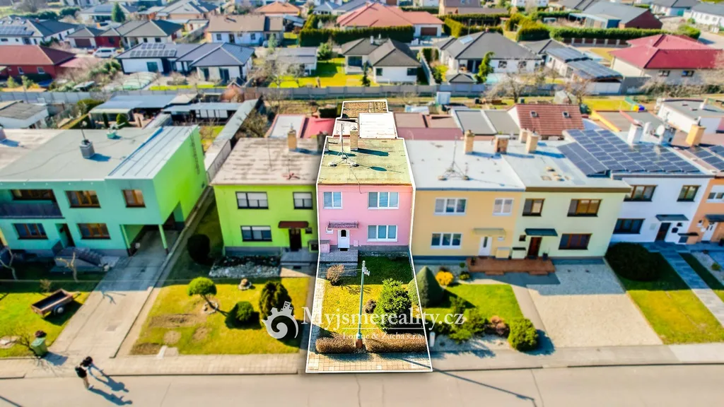 Řadový rodinný dům o dispozici 4+kk s garáží a okrasnou zahradou s posezením se nachází v klidné ulici J. Fučíka v Hrušovanech nad Jevišovkou.