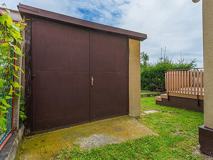 Pozemky mají celkovou výměru 291 m² a jsou kompletně zainvestované. Z příslušenství se na pozemcích nachází již zmíněná zděná garáž pro 1 vozidlo, na ní navazující přístřešek a menší dřevěný zahradní domek. Zahrada je po obvodu lemována okrasnými a ovocnými stromy a keři.