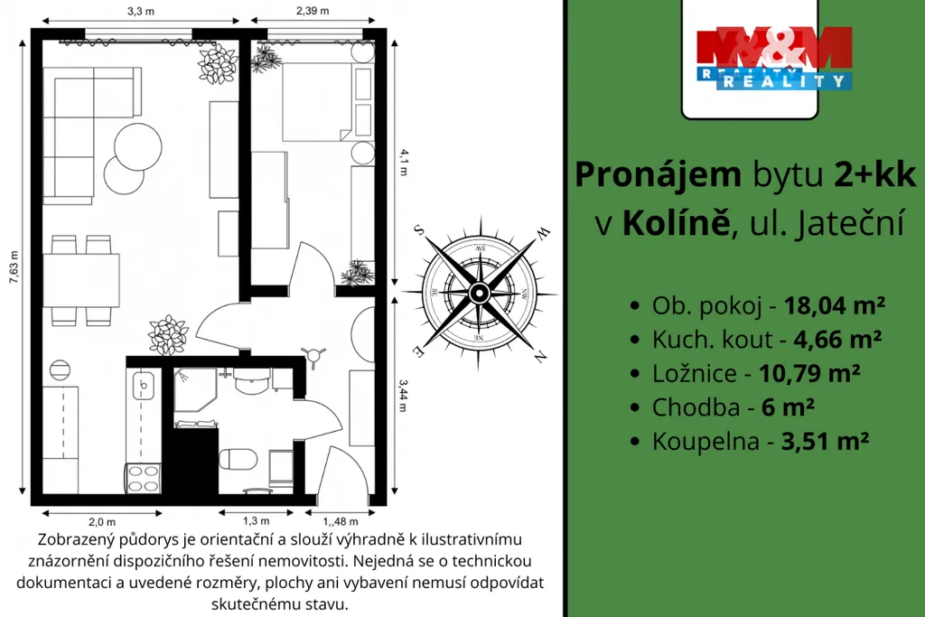 Nabízíme k dlouhodobému pronájmu světlý byt o dispozici 2+kk a celkové výměře 43 m² ve vyhledávané lokalitě Kolín IV – U Jána. Byt je situován v 5. nadzemním podlaží a nabízí příjemnou jihozápadní orientaci, která zajišťuje dostatek denního světla. Byt prošel rozsáhlou rekonstrukcí včetně zděného bytového jádra, díky čemuž nabízí moderní a pohodlné bydlení připravené k okamžitému nastěhování. K bytu náleží také sklepní kóje poskytující praktický úložný prostor. Velkou výhodou je samotná lokalita. V docházkové vzdálenosti se nachází mateřská školka, škola, zastávky MHD a PID, nemocnice, obchody i další služby, takže veškerá občanská vybavenost je doslova na dosah ruky. K nájemnému nutno přičíst zálohy na poplatky a služby ve výši 4.000 Kč měsíčně, kauce se skládá ve výši dvou měsíčních nájmů a odměna zprostředkovateli činí 17.545 Kč včetně DPH. Pokud Vás nabídka zaujala neváhejte si sjednat prohlídku.