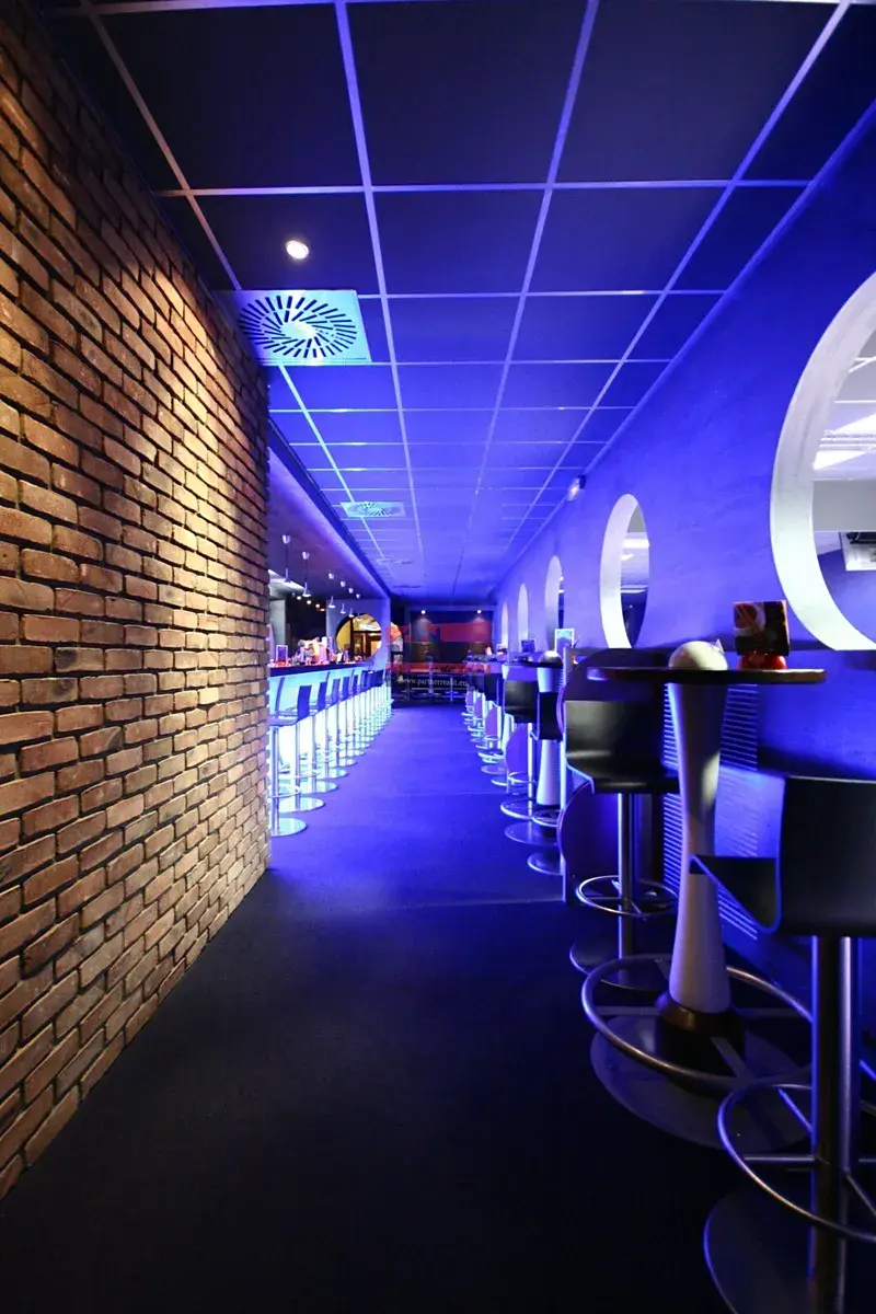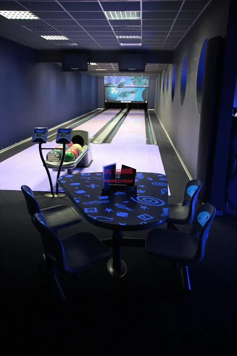 1.NP: bar s posezením: 97,65 m², zázemí hráčů: 37,62 m², bowlingové dráhy: 103,40 m², strojovna: 7,95 m², herna: 29,30 m², chodba: 17,90 m², úklid: 1,89 m², WC muži: 8,40 m², WC ženy: 8,00 m², zázemí baru: 9,30 m².