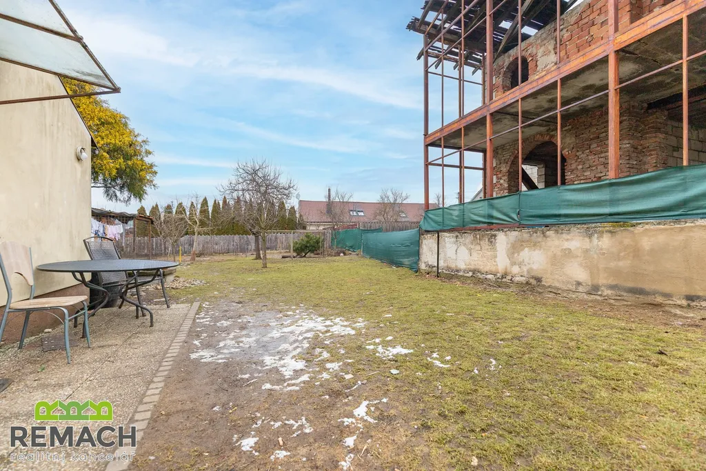 - Levý přízemní dům je ihned obyvatelný. Dispozičně řešen jako 2+1 s velkou vstupní chodbou. Za domem se nacházejí hospodářské budovy a již zmíněná prostorná zahrada s ovocnými stromy.