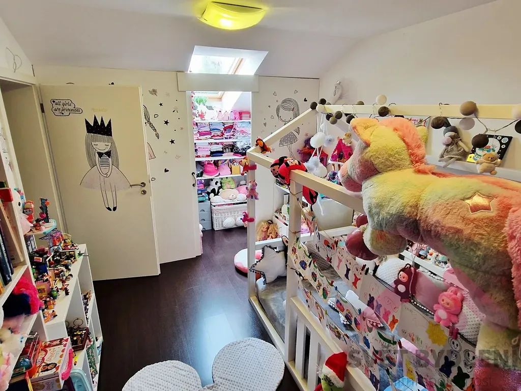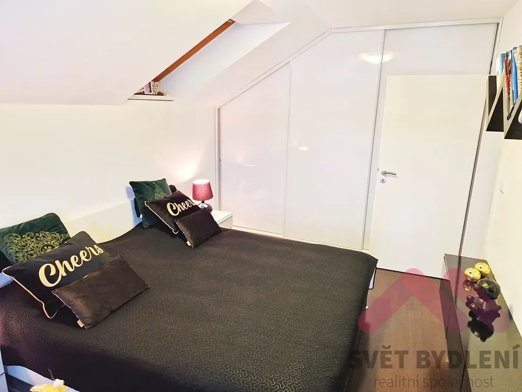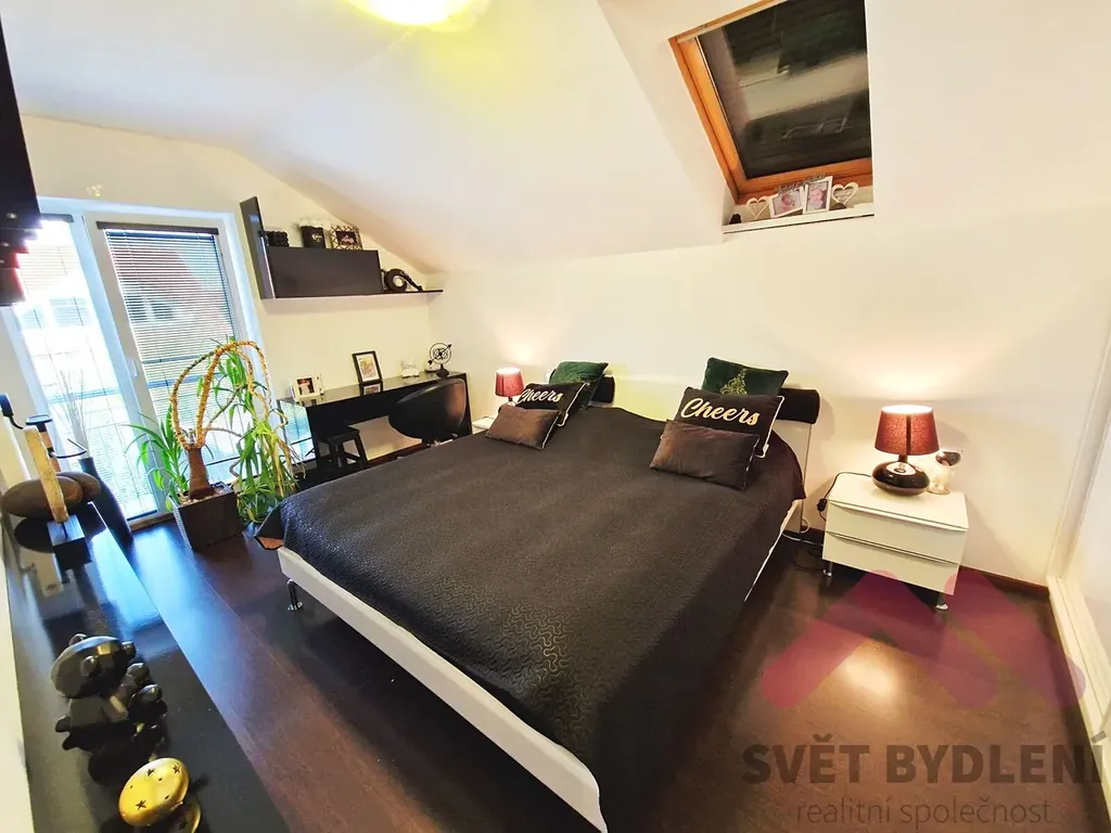 Tři samostatné ložnice, všechny vybavené vestavěnými skříněmi na míru. Velká šatna - ideální pro přehledné uskladnění oblečení a sezónních věcí. Z šatny lze udělat další pokoj. Koupelna s rohovou vanou a podlahovým topením pro maximální komfort.