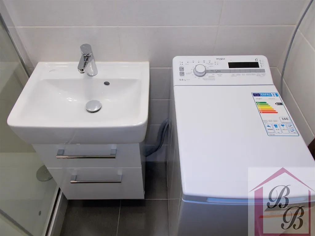 Byt je částečně vybavený (kuchyňská linka s vestavnými spotřebiči - lednice s mrazáčkem, indukční varná deska, trouba; vestavné skříně v chodbě, pračka).