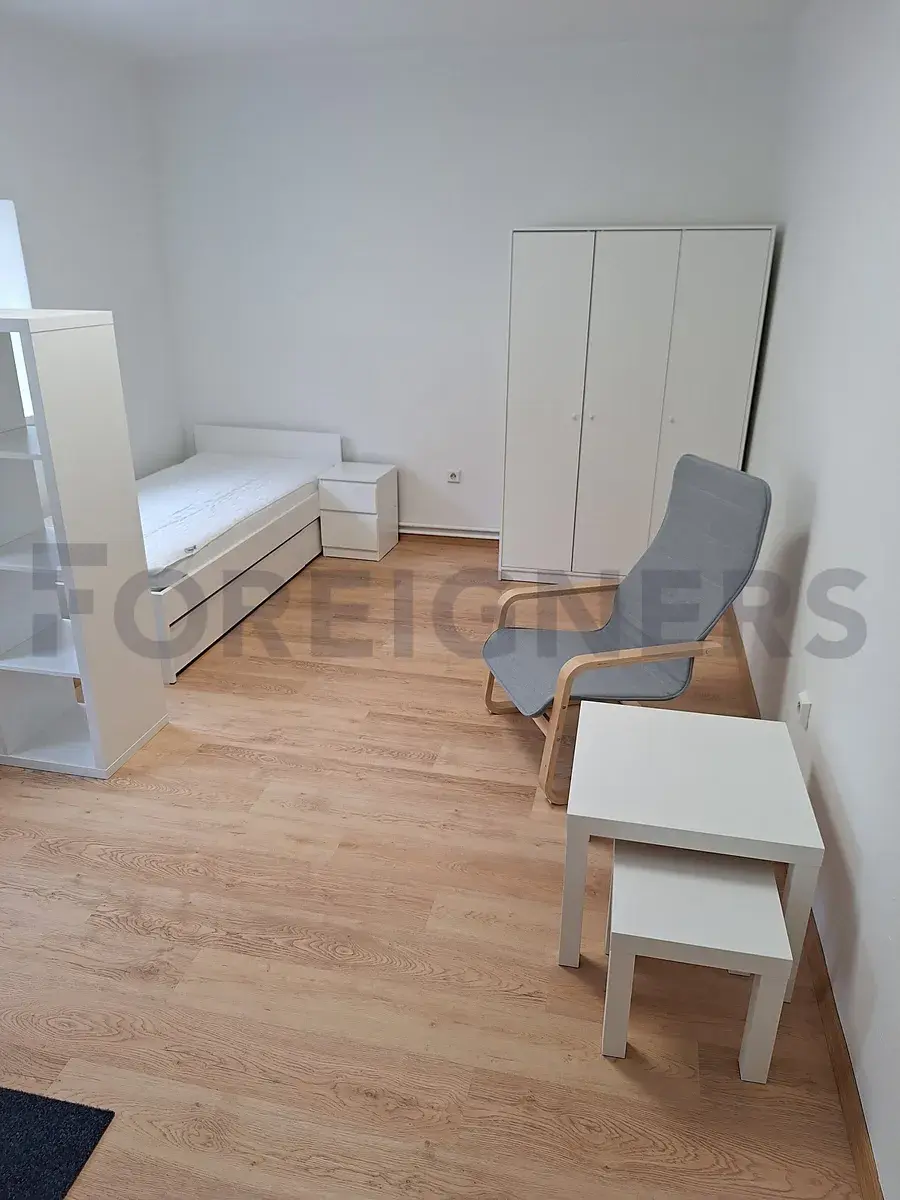 Hledáte klidné a zároveň centrální bydlení? Nabízíme světlý pokoj o rozloze 16 m², ideálně řešený pro komfortní bydlení – plně vybavený dvojlůžkem, pracovním stolem se židlí, komodou a šatní skříní.
