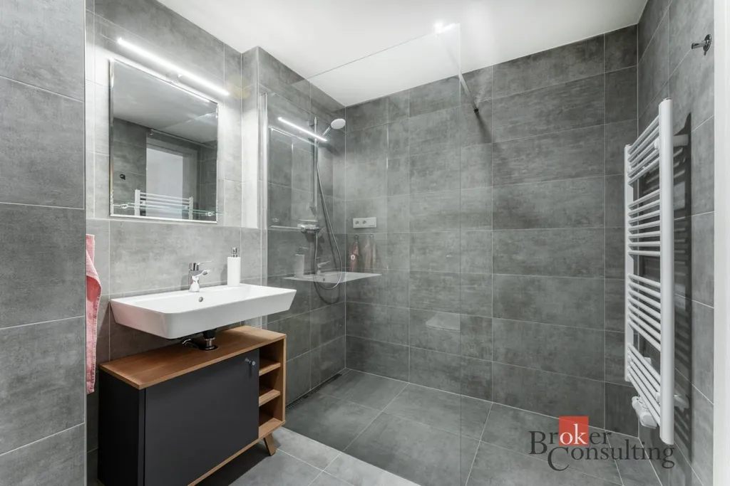 Bytová jednotka je situována v cihlovém, zatepleném domě a díky moderním technologiím je velmi úsporná na provoz. Vytápění i ohřev vody jsou řešeny centrálně. Jedná se o zcela nový byt, ve kterém dosud nikdo nebydlel. Byt je vybaven bezpečnostními vstupními dveřmi a venkovními roletami na dálkové ovládání. Orientace na jihozápad zajišťuje příjemné prosvětlení během dne. Součástí bytu je kuchyňská linka vybavená elektrickou troubou, sklokeramickou varnou deskou, myčkou, lednicí s mrazákem a mikrovlnnou troubou. Byt je dále zařízen rozkládací pohovkou, knihovnou, barovým pultem a konferenčním stolkem. Dispozici tvoří předsíň, obytný pokoj s kuchyňským koutem a koupelna se sprchovým koutem a toaletou. Praktickým benefitem je také sklep umístěný na patře domu.