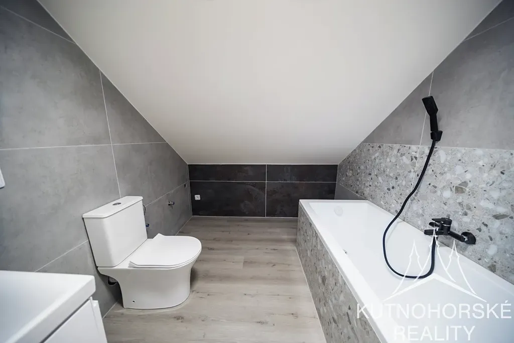 Celkově tři koupelny s toaletami (2x vana, 1x sprchový kout).