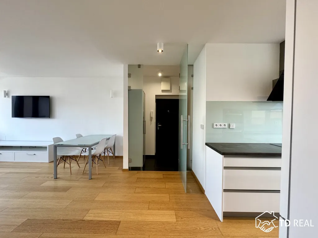 Byt prošel nákladnou rekonstrukcí a je nadstandardně vybaven – podlahové vytápění v celém bytě, dřevěné podlahy, nová plastová okna – trojskla, kvalitní kuchyňská linka s vestavěnými spotřebiči, byt je vymalován.