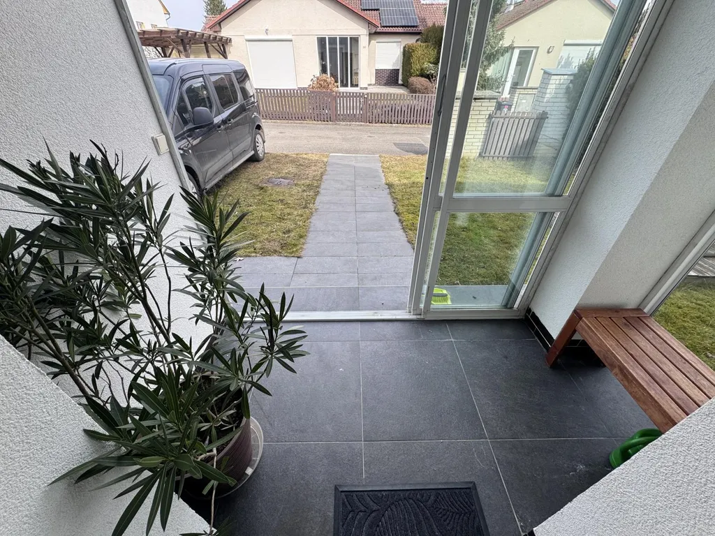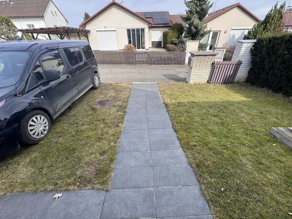 K domu náleží parkování na předzahrádce. Na zahradě se nachází terasa s markýzou a pískoviště.