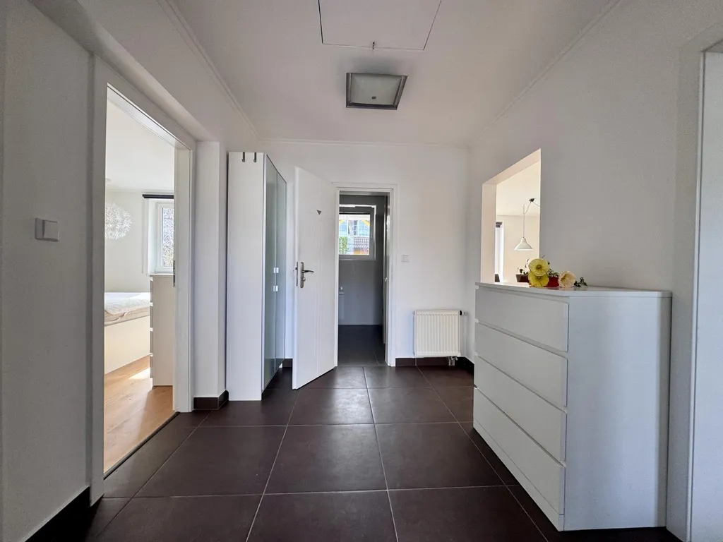 Kuchyň je plně vybavena spotřebiči myčka, lednice, sporák a trouba. V chodbě je k dispozici kombinovaná pračka se sušičkou (2v1). Koupelna je vybavena sprchovým koutem i vanou. Součástí domu je také pracovna se stolem a židlí a velký úložný prostor na půdě.