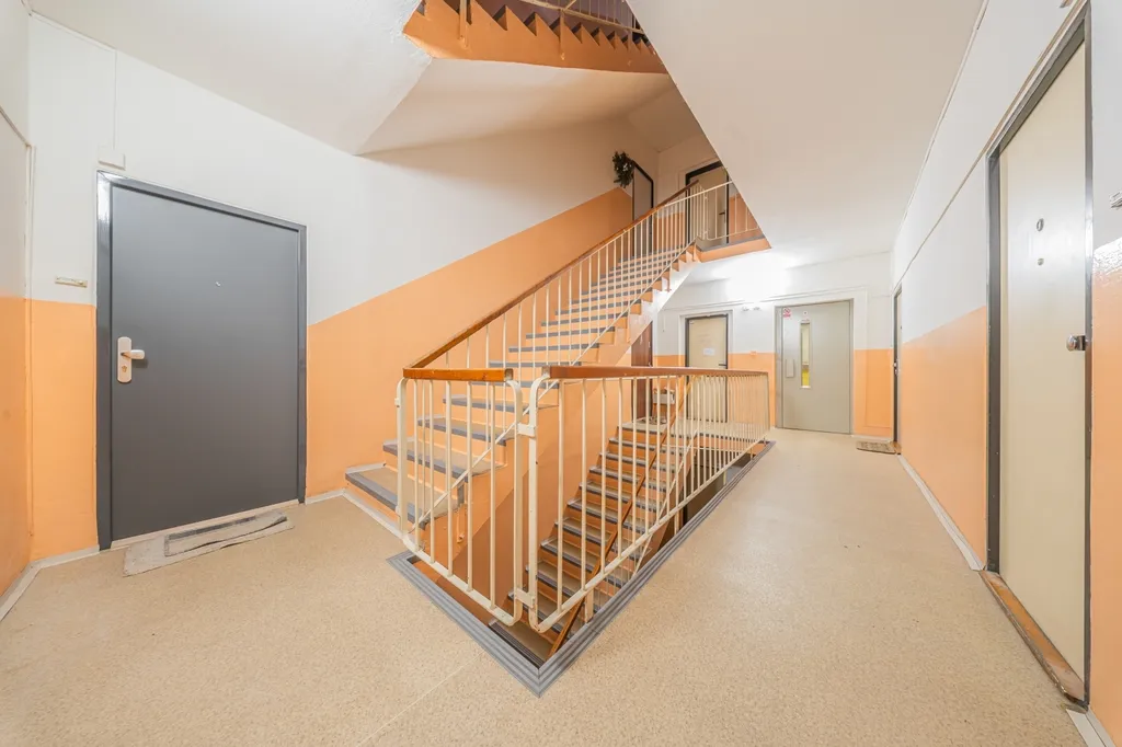 Nabízíme ke prodeji bytovou jednotku o dispozici 1+1 a podlahové ploše 35 m², doplněnou balkonem o velikosti 2 m². Byt se nachází ve 4. patře domu ve velmi klidné části Kladna – Kročehlavy, v ulici Finská. K bytu náleží také praktický sklepní prostor o výměře 2 m², který je umístěn přímo na patře. Jihozápadní orientace zajišťuje dostatek denního světla.