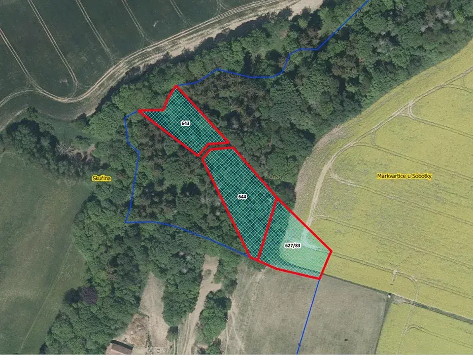 Nabízíme Vám k odkupu les u obce Markvartice u Sobotky (p.č. 643 a p.č. 644 na LV 52) o výměře 3244 m2. Dle LHO se jedná o porost 25 letou BR a OS. Jak je vidět na obrázku možnost, je i možnost přikoupení našeho navazujícího pole p.č. 627/83 o výměře 1622 m2. Pokud máte jakékoliv dotazy, neváhejte nás kontaktovat.