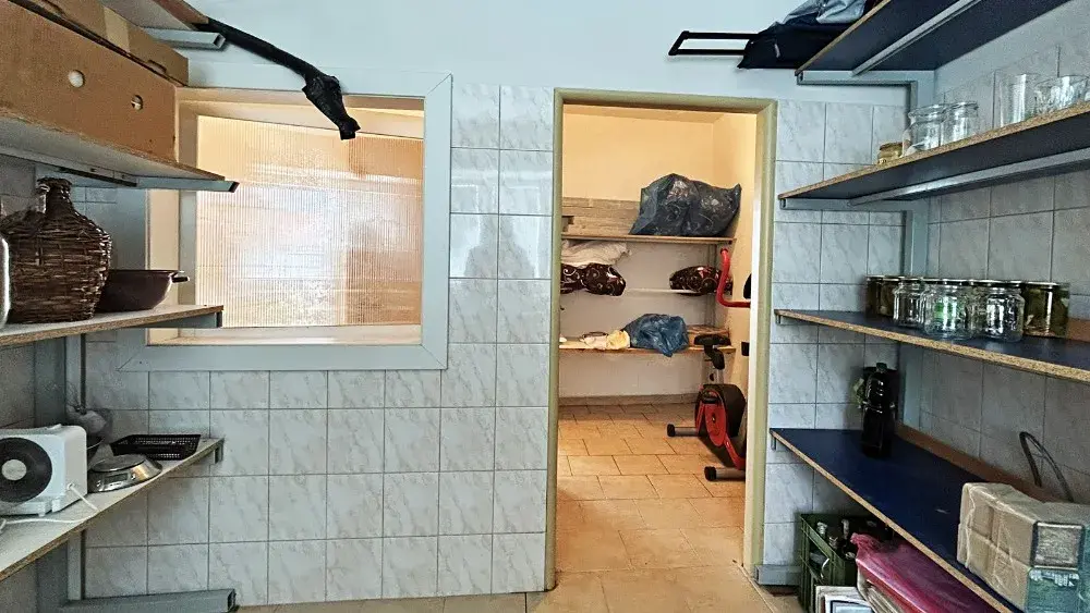 - průjezd, sezení pro hosty, uzavřený dvůr - krytá 3 parkovací stání, venkovní parkovací stání, velká garáž, kolna, 4 x sklad, 4 x sklep, dílna s ponkem