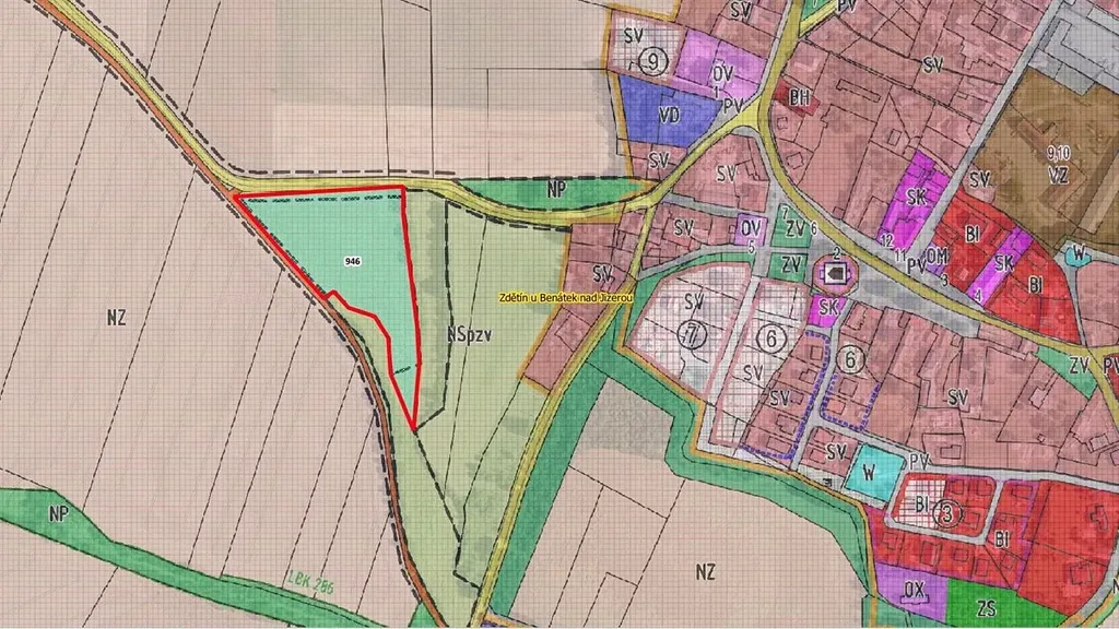 Nabízíme k prodeji pozemek p.č. 946 o celkové výměře 11 949 m2 v k.ú. Zdětín u Benátek nad Jizerou, vedený na LV 199. Pozemek je řádně obhospodařován místním zemědělcem, který dodržuje osevní postupy. Smlouva je uzavřena na dobu neurčitou s výpovědní lhůtou 1 rok. Pozemek je tedy vhodný k vlastnímu hospodaření, popřípadě směnu.