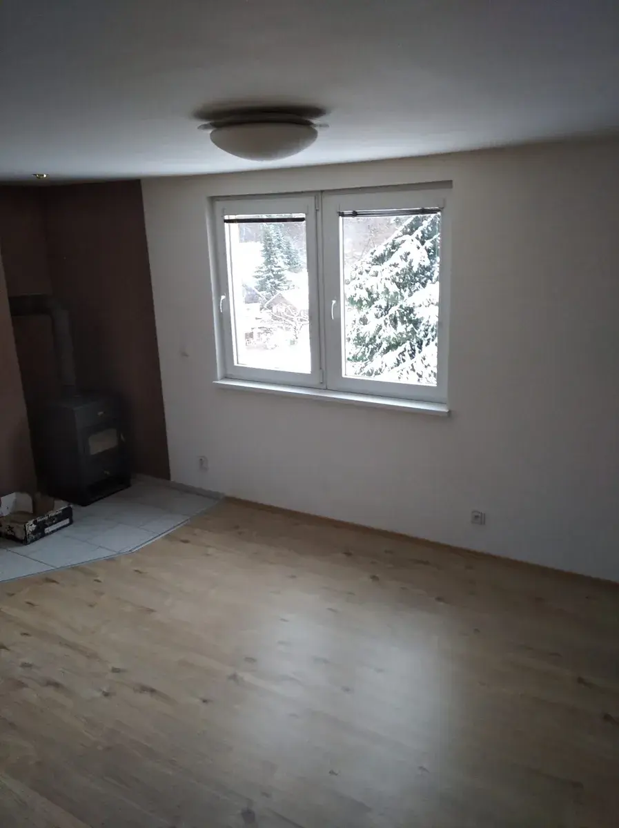 Tento samostatný rodinný dům se nachází v pěkném prostředí Jizerských hor. Je vhodný k celoročnímu užívání. V přízemí se nachází obývací pokoj s kompletně vybavenou kuchyní (sporák, lednice, myčka), koupelna se sprchovým koutem a toaletou, předsíň. V prvním patře jsou 2 ložnice (jedna s balkonem) a samostatné WC. Dům je dále vybaven pračkou a základním nábytkem. Ohřev vody je přes elektrický bojler. Vytápění krbovými kamny a elektrickými přímotopy. Plastová okna. V místnostech jsou plovoucí podlahy a koberce. K nemovitosti patří menší zahrada (cca 150m2 ) a venkovní parkovací místo. Kousek od domu je sjezdovka s dvěma vleky, snowparkem a sáňkařskou tratí, Tanvaldský Špičák (cca 10 min. autem). Nemovitost je poblíž Jablonce nad Nisou. Po 5 minutách chůzí dojdete na železniční zastávku. Kauce a provize pro RK činí jedno měsíční nájemné.