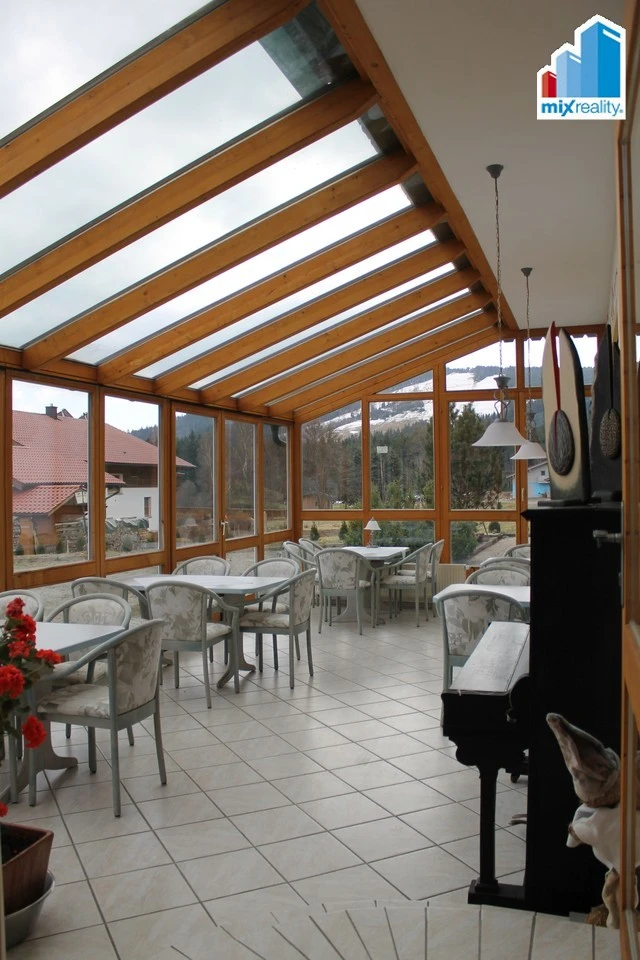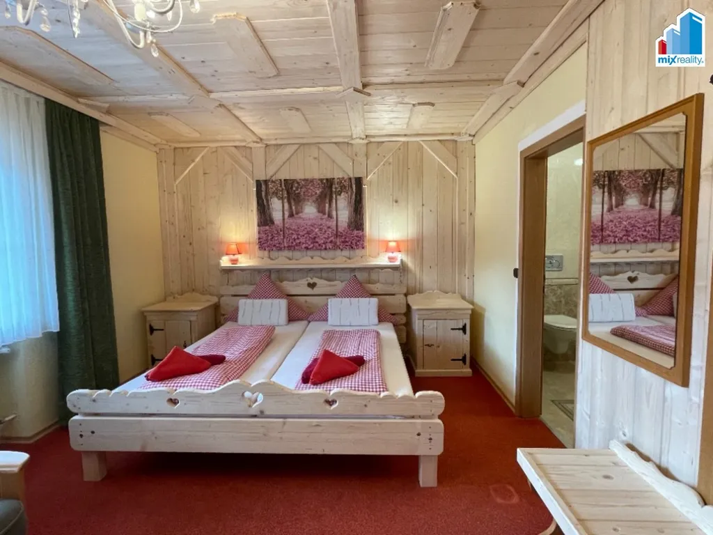 Výjimečná investiční příležitost. Naše realitní kancelář Mixreality nabízí k prodeji jedinečný hotelový areál v atraktivní turistické lokalitě Bavorského lesa, přímo pod oblíbeným sportovním areálem Geißkopf. Nemovitost se nachází přibližně 30 minut od Železné Rudy a představuje mimořádnou investiční příležitost v oblasti s celoroční turistickou návštěvností. Areál tvoří dva samostatné objekty, každý s vlastním pozemkem a výhledem na horu Geißkopf. Celková kapacita ubytování je přibližně čtyřicet ubytovacích jednotek, které zahrnují dvoulůžkové a třílůžkové pokoje, apartmány i samostatné byty. Hlavní budova slouží jako hotel s restaurací a pokoji pro hosty. Druhá budova má dva samostatné vchody a je vedena jako obytný dům s prostory pro podnikání. Jedna část nabízí další pokoje pro hosty, druhá část je tvořena byty a apartmány. Oba objekty jsou navzájem propojeny sklepní částí, zároveň však mohou fungovat i zcela samostatně. Součástí areálu je oblíbená restaurace nabízející českou i bavorskou kuchyni, wellness zázemí se saunou, posilovna, seminární místnost, dětské hřiště, garáž a přístřešek pro motorky. Příjemnou atmosféru celého místa doplňuje upravená zahrada s jezírkem, vodopádem a okrasnými KOI kapry. K nemovitosti náleží také stavební pozemek s venkovním bazénem a stylovým dřevěným altánem, který nabízí další možnosti rozšíření nebo vybudování doplňkových služeb pro hosty. Další pozemek u hlavní budovy zahrnuje nově postavenou stodolu, která je aktuálně využívána pro chov zvířat. Tento prostor může být využit například pro agroturistiku, ekologické hospodaření nebo koncept ekohotelu s vlastní bio produkcí. Lyžařský areál Geißkopf se nachází přibližně 500 metrů od hotelu a nabízí několik kilometrů upravených sjezdovek, snowpark, sáňkařskou dráhu i moderní lanovky. Lokalita je vyhledávaná nejen v zimní sezóně, ale také v létě, kdy se oblast mění v centrum outdoorových aktivit. Geißkopf je známý jedním z nejlepších bikeparků v Evropě a okolí nabízí desítky kilometrů cyklostezek a nových e-bike tras. V blízkosti se nachází také unikátní 3D lukostřelecký park v lese, golfové hřiště vzdálené přibližně deset minut jízdy a mnoho dalších turistických atrakcí. Celková užitná plocha objektů činí přibližně 1 746 m², zastavěná plocha 780 m² a celková plocha pozemků přibližně 1 995 m². K areálu náleží také rozsáhlá zahrada o rozloze 7 834 m², která poskytuje dostatek prostoru pro relaxaci hostů i další rozvoj podnikání. Nemovitost je ideální pro investory hledající zavedený hotelový provoz v atraktivní turistické lokalitě, pro podnikatele v oblasti gastronomie a ubytování nebo pro zájemce, kteří chtějí spojit podnikání s životem v přírodě. Pro více informací, detailní podklady nebo domluvení osobní prohlídky kontaktujte realitní kancelář Mixreality.
