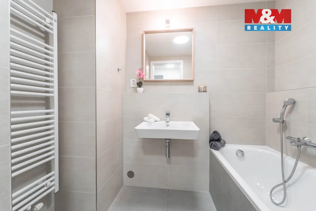 Nabízíme k prodeji luxusní byt 3+kk o ploše 86 m² s předzahrádkou a lodžií o celkové vel. 151m2 v prestižním rezidenčním projektu Riviera Modřany, oceněném Stavbou roku.Tato moderní novostavba z cihel se nachází v klidné části Modřan. Byt v 1.nadzemním podlaží disponuje prostornou slunnou terasou a lodžií s přístupem z každého pokoje, předzahrádku s výhledem do zeleně. Součástí je také garážové stání s úložným prostorem na 2 kola. Byt je vybaven standardy a technologií na vysoké úrovni, kuchyňská linka vybavená spotřebiči, dřevěná fr. okna s bezp. folií a s el. ovládanými žaluziemi, dřevěná podlaha, velkoformátové dlažby, centrální rekuperace, FVE, inteligentní ovládání centr. vytápění, optika. Dostatek úložných prostor v samostatné šatně a prostorné komoře. Okolí nabízí bohaté možnosti pro aktivní odpočinek, včetně cyklostezky, golfového hřiště a dětských či sportovních hřišť.Ideální volba pro ty, kteří hledají moderní bydlení v klidné lokalitě s výbornou dostupností do centra města.