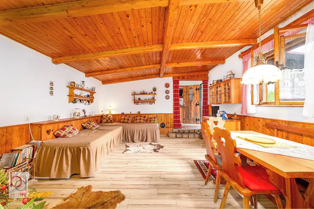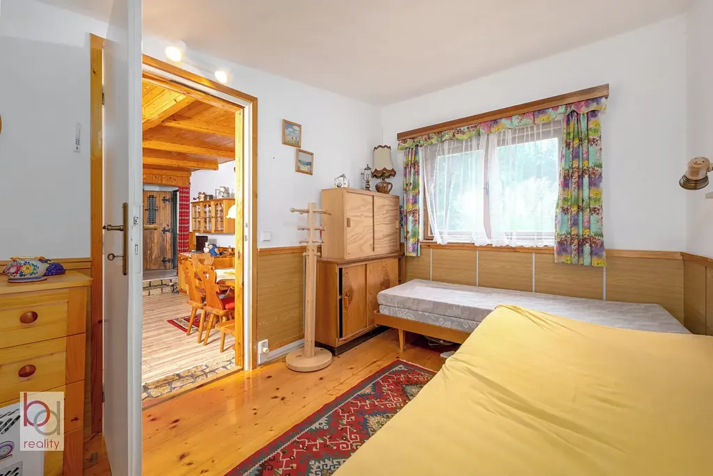 Prodej rekreační chaty s vlastním pozemkem v obci Dobronice u Bechyně. Chata je postavena z cihel a škvárové tvárnice. Objekt je zrekonstruován z bývalého hospodářského stavení a je součástí celku - rekreační "dvojdomek. Přestavěno v 70. letech a průběžně renovováno v posledních 15 ti letech. Zastavěná plocha nemovitosti 86m2. K nemovitosti patří 452 m2 velký, travnatý pozemek ohraničený nově vysázeným živým plotem. Parkování je zajištěno na vlastním pozemku. Jsou zde skvělé podmínky pro rekreaci, bydlení, cykloturistiku, turistiku, vodní sporty. Sběr lesních plodin, houbaření. Chata je vybavena šamotovým krbem, avšak bez odtahu. Nutno dostavět komín. V objektu je vystavěno šamotové komínové těleso k připojení krbových kamen. Nachází se v obývací místnosti u vstupu. Z obytného prostoru je vstup na terasu. V přízemí se nachází koupelna se sprchovým koutem , WC , umyvadlo. Obývací pokoj propojený s jídelnou a vstupem do ložníčky. Kuchyň je plně vybavená kuchyňskou linkou , el. dvouplotýnka , lednice Podlahová krytina dlažba v dekoru dřevo v obývací místnosti, jinak dřevotřískové desky. Koupelna a toaleta dlažba. Chata není podsklepená. Krytá veranda je podsklepená (skladovací prostor-výška cca 1m). U chaty je přistavená kůlna z heraklitových desek.