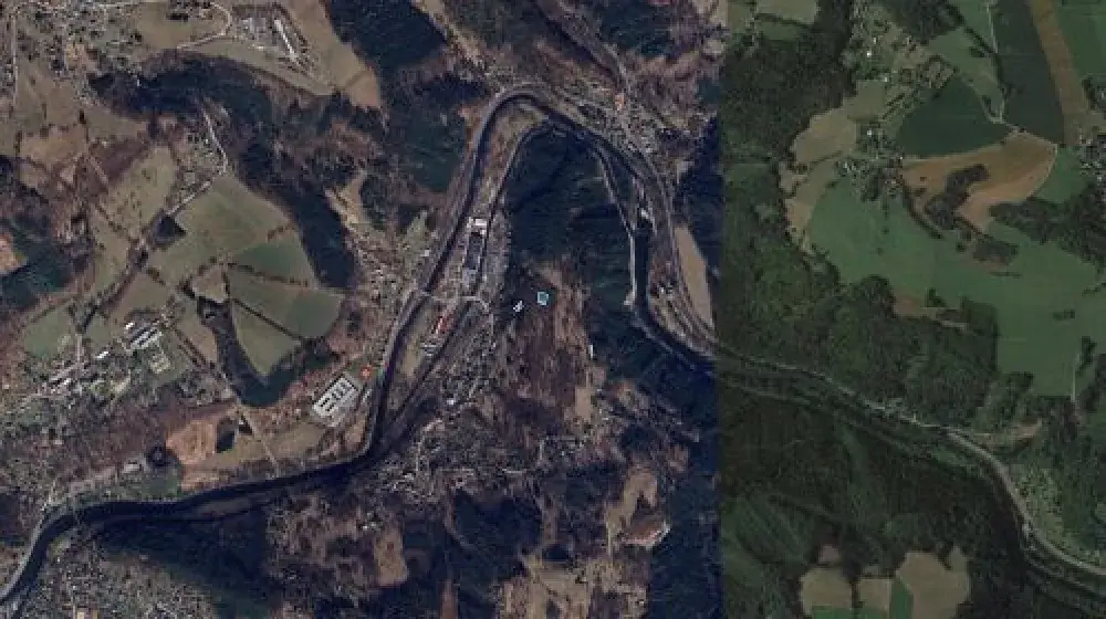 ➡️ Kombinace zeleně, lesního pozemku a komunikace.