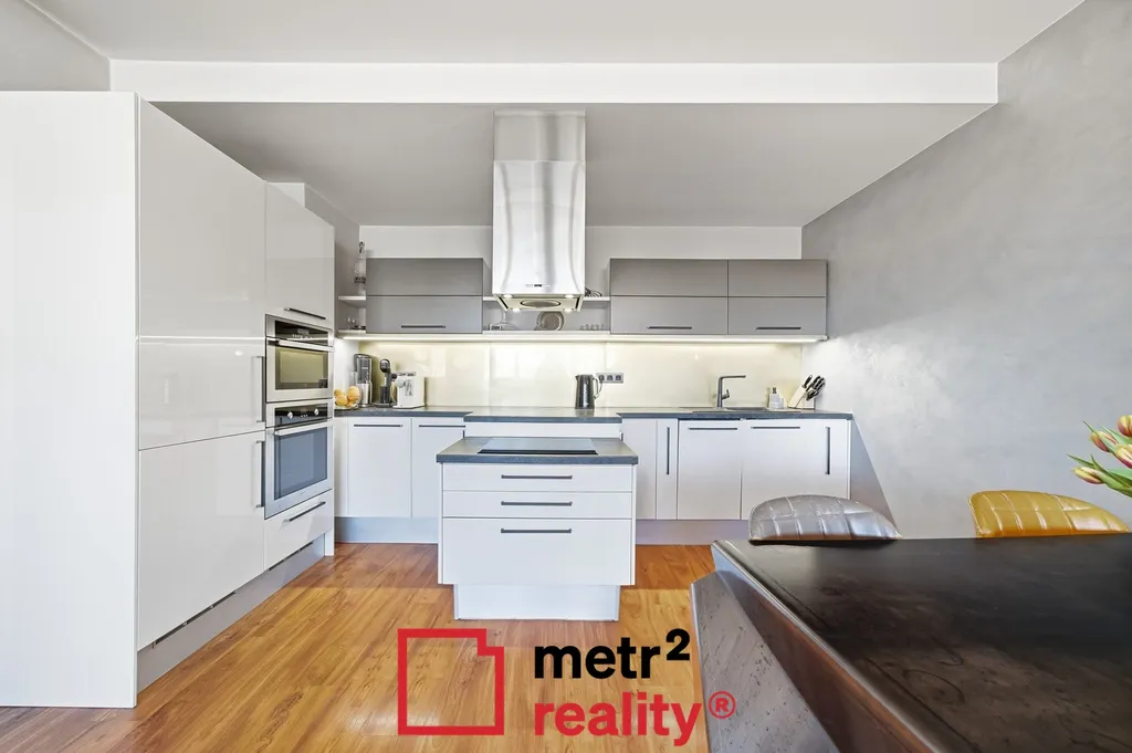 Ve výhradním zastoupení majitele si Vám dovolujeme nabídnout krásný a velmi slunný byt o dispozici 3+k v novostavbě bytového domu na ulici Družební v Olomouci. Byt má výměru podlahové plochy 79 m2, k němu náleží terasa o výměře 20,37 m2. Dále cena zahrnuje vnitřní parkovací stání o nadstandardní výměře 26,59 m2 a jako jediný vlastník bytu v domě má majitel samostatnou komoru na patře o výměře 4,44 m2. Byt se nachází ve čtvrtém (posledním) nadzemním podlaží domu s výtahem a z terasy, na které majitel nechal vybudovat zastřešenou hliníkovou pergolu, je krásný výhled do parku lásky a na kapličku. V letošním roce se navíc bude na terase v rámci SVJ dělat nová dlažba. Byt je svou dispozicí ideální i pro větší rodinu, jelikož disponuje prostorným obývacím pokojem s kuchyňským koutem o výměře 30,07 m2, dvěma pokoji se samostatnými vstupy o výměrách 12,36 m2 a 14,71 m2, samostatnou koupelnou se sprchovým koutem i vanou a WC a šatnou, což zaručuje komfort bydlení pro všechny jeho obyvatele. Vstup na terasu francouzským oknem je možný jak z obývacího pokoje, tak ložnice. Majitel při zařizování bytu kladl důraz na použití kvalitních a nadstandardních materiálů, jsou zde použity stěrky v pokojích, kuchyňská linka na míru značky Koryna, včetně vestavěných spotřebičů, prostor mezi kuchyňskými skříňkami je obložen mosaznými panely, v obývacím pokoji, kuchyni a předsíni jsou dále kamenné obklady na zdech. V obývacím pokoji je klimatizační jednotka a v celém bytě pak jsou nainstalovány venkovní žaluzie s dálkovým ovládáním, což i v letních měsících zajišťuje v bytě příjemné teploty. Klimatizací si navíc může nový majitel v případě potřeby i přitápět. Vytápění je centrální dálkové, v koupelně je pak vedeno v podlaze, teplota v bytě se nastavuje termostatem. V rámci bezpečnosti majitel nechal nainstalovat vstupní bezpečnostní dveře značky ADLO Elite. Samozřejmostí je optický internet v bytě. Byt by zůstal částečně zařízený, zejména zůstává kuchyňská linka a kompletní nábytek na míru v ložnici, včetně led osvětlené stěny. Byt je velmi vzdušný a slunný, nachází v klidné okrajové části města, ve vnitrobloku, tudíž se poblíž nenachází žádná rušná cesta, s velmi dobrou dopravní dostupností do centra (autobus, tramvaj) a veškerou občanskou vybaveností v bezprostřední blízkosti. Je vhodný jak k bydlení, tak na investici a následný pronájem. Je vhodný k okamžitému nastěhování a v případě zájmu o prohlídku nás neváhejte kontaktovat.