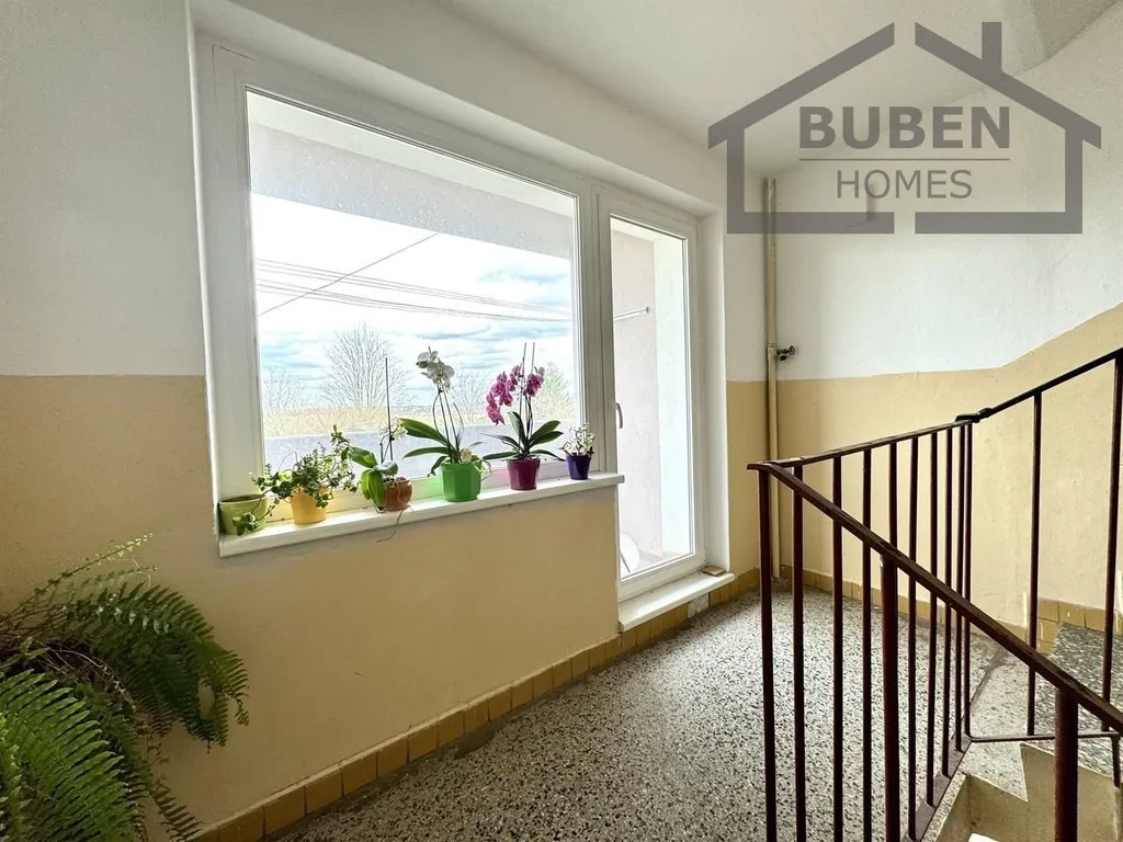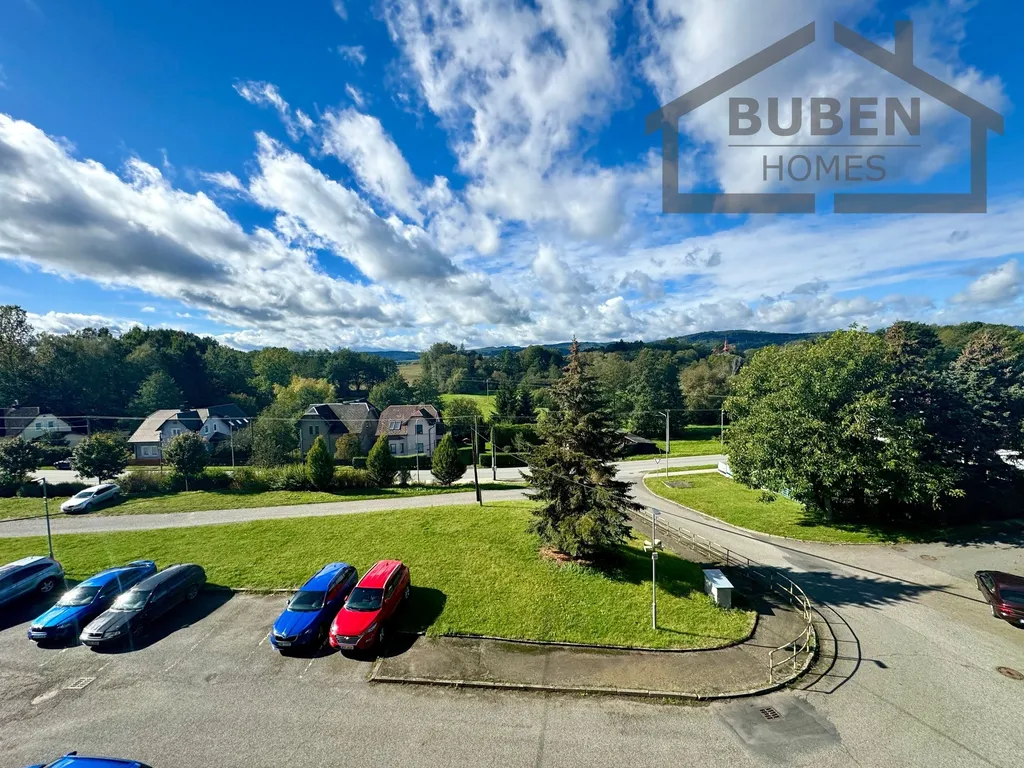 Byt tvoří vstupní chodba, kuchyň, koupelna s WC a prostorný pokoj. Je situovan na západní a východní stranu a zajišťuje pěkné výhledy do okolí. K bytu náleží sklepní koje a lodžie v mezipatře.