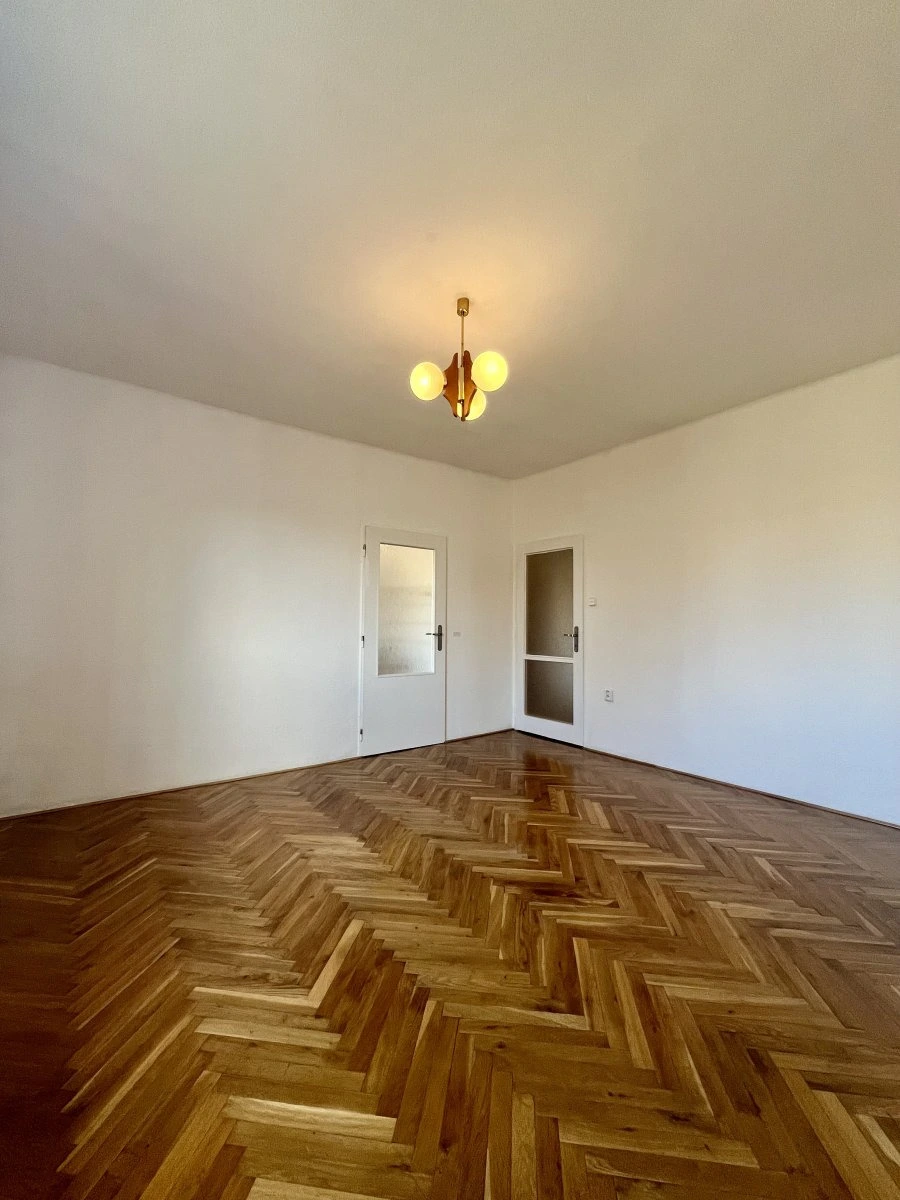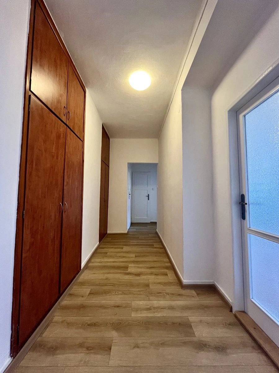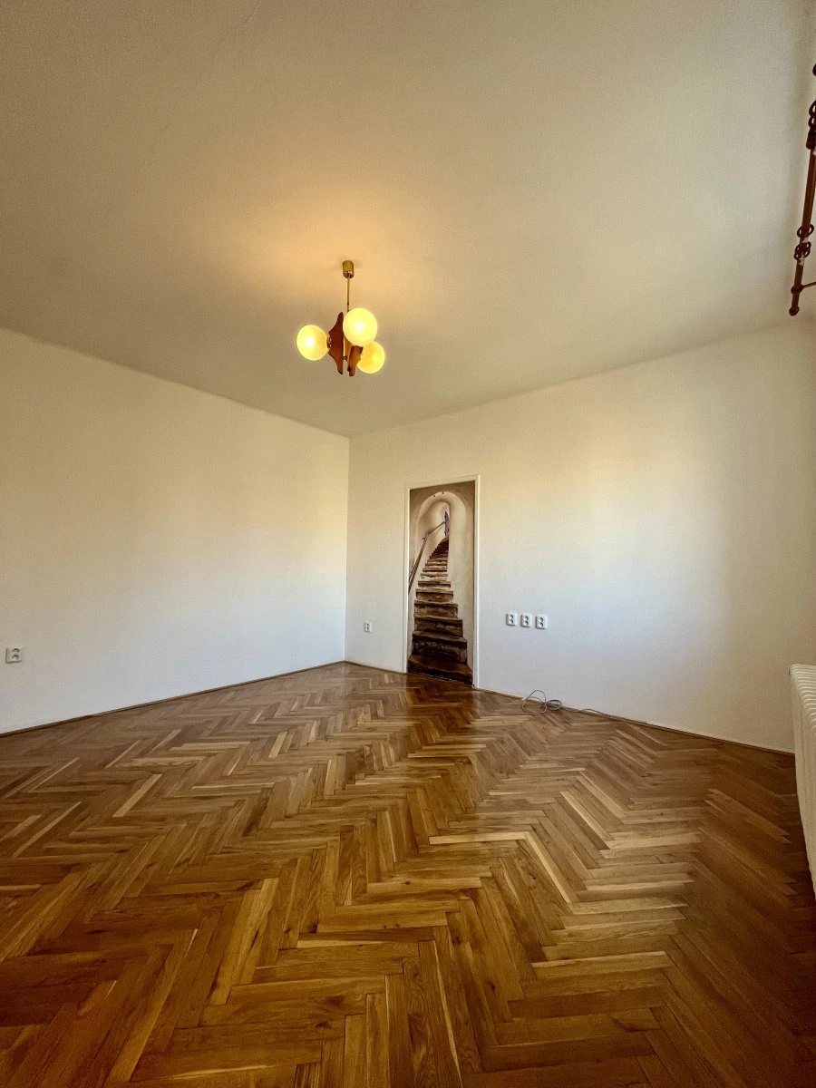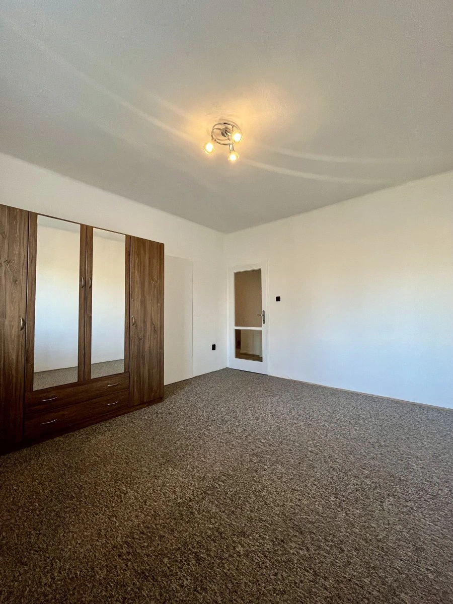 Nabízí jeden neprůchozí pokoj v zadní části bytu.