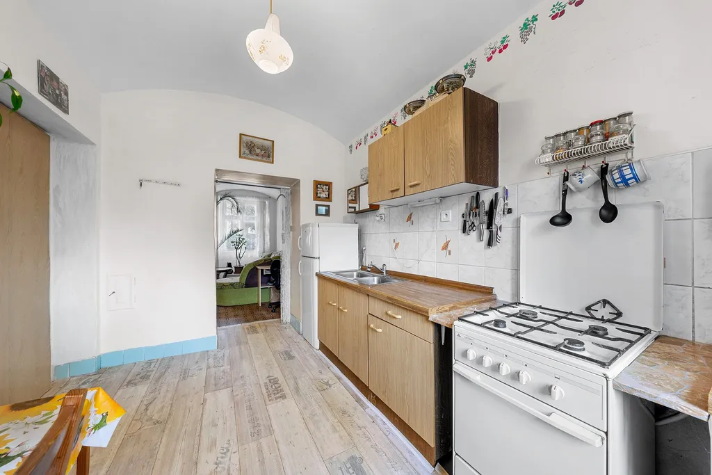 • Stylové rodinné bydlení: Spojení historických kleneb v obývací části s moderním podkrovím vytvoří unikátní domov, který v novostavbě nenajdete. Možnost propojení kuchyně se zahrádkou.