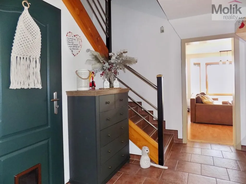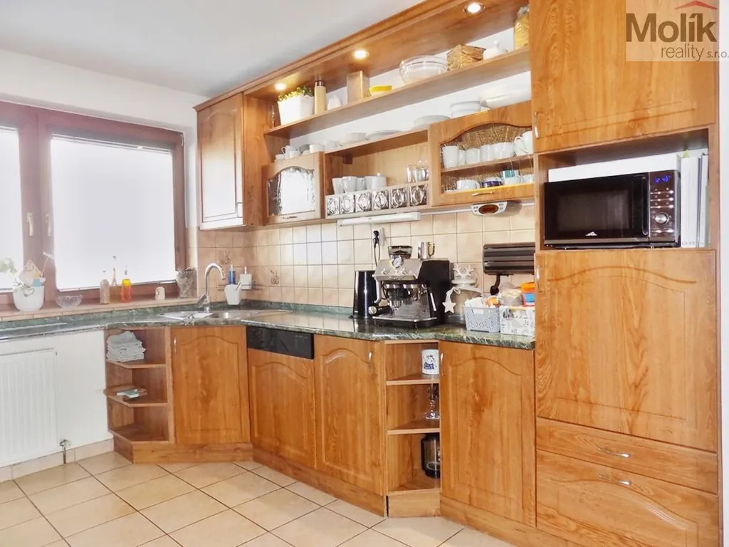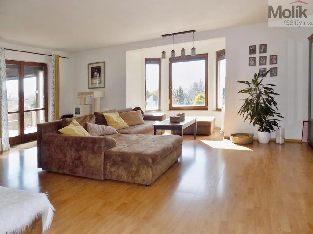 Hledáte rodinný dům v nádherném prostředí se zastřešeným posezením, zapuštěným bazénem a pozemkem o celkové ploše 1140 m2 ? Nabízíme Vám k prodeji nádherný rodinný dům o obytné ploše 190 m2. Nemovitost se nachází na samém konci slepé ulice v klidné a vyhledávané lokalitě rodinných domů a disponuje nádherným výhledem do krajiny. Nabízí komfortní bydlení s rozlehlým pozemkem se zapuštěným bazénem a zastřešenou terasou s možností úplného uzavření venkovní žaluzií, na kterou se vstupuje z obývacího pokoje. Dům samotný byl zkolaudován v roce 2001 a disponuje nízkými náklady na bydlení díky vytápění krbovými kamny a možností temperovat a ohřívat vodu pomocí kondenzačního kotle, který využívá plyn ze zásobníku na zahradě. Do domu je zavedena elektřina 220 i 380V, pitná voda, kanalizace a vysokorychlostní internet. V přízemí domu se nachází vstupní chodba, vlevo dále koupelna se sprchovým koutem, toaleta a vstup do garáže, která je připravena na případnou přestavbu v obytnou místnost. V pravé části je kuchyně s kuchyňskou linkou vybavenou vestavěnou plynovou varnou deskou, el. troubou, myčkou, vestavěnou lednicí s mrazákem, digestoří a mikrovlnnou troubou. Dále je zde jídelna a prostorný obývací pokoj s krásným výhledem a se vstupem na terasu a zahradu. V prvním patře se nachází ložnice, dětský pokoj, pokoj pro hosty, pracovna a koupelna s rohovou vanou, sprchovým koutem a toaletou. Nemovitost disponuje pochozí půdou. V pokojích v prvním patře a obývacím pokoji je plovoucí podlaha. V chodbě, kuchyni, koupelnách, WC a na schodech je dlažba. Střecha je z pálených tašek, okna a vstupní dveře plastová. Vjezd na pozemek z ulice bránou na DO, mimo garáž v domě je na pozemku ještě dvojgaráž a v přístavku u domu je prostor k uskladnění zahradní techniky, nářadí a kol. Na slunné a rozlehlé zahradě si každý najde místo k odpočinku, koupání, slunění a posezení s přáteli u ohniště nebo na terase, kam je vyveden i TV kabel. Na zahradu je vyvedena voda, rozvedena elektřina a venkovní osvětlení. Vzhledem k lokalitě, stavu nemovitosti, nízkým nákladům na bydlení se jedná o ideální bydlení pro rodinu.V případě zájmu Vám zajistíme velmi výhodné financování této nemovitosti naším hypotéčním specialistou. Pro více informací nebo domluvení prohlídky volejte makléři 7 dní v týdnu.