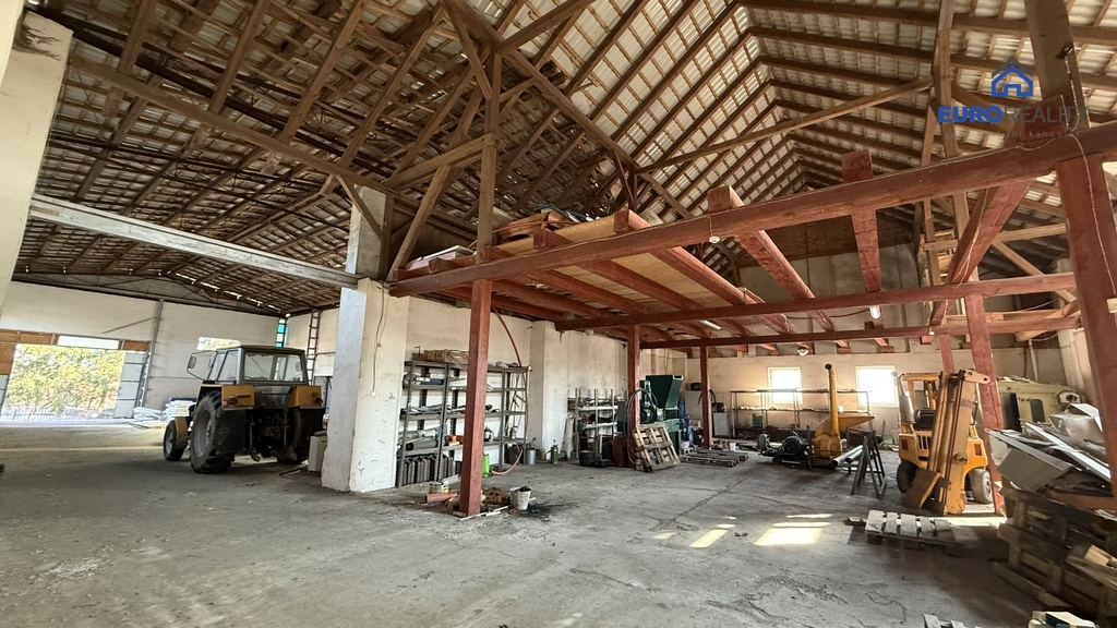 Prodej výrobního a skladovacího areálu v sousedství letiště Erpužice. Prodává se areál o celkové ploše 10 996m2 a několik výrobních a skladovacích hal o výměře 1 400m2 o výšce 8,5m a druhá je nižší 7m s vraty 4,5m, garáž 26m2.