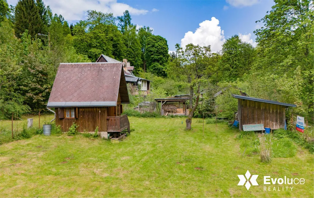 Stavební pozemek o rozloze 1.670 m2, zahrada 3.225 m2, nynější stavba chaty 20 m2. Kde se toto krásné místo nachází? 10 minut od Trutnova, lokalita Zlatá Olešnice. Na konci obce Libeč.
