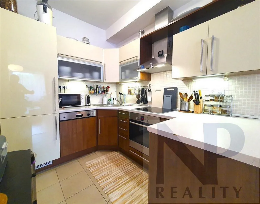 Nabízíme Vám krásný byt 2+kk 64 m² s prostornou jihozápadní terasou o výměře 15 m². Byt se nachází v udržované novostavbě na kraji Prokopského údolí. Byt je tvořen předsíní 8,7 m², obývacím pokojem 22 m² s kuchyňským koutem 5,5 m², ložnicí 16,5 m², koupelnou s vanou 6 m², WC 2 m² a komorou 2 m². Byt je vybavený kuchyňskou linkou s horkovzdušnou troubou a varnou deskou Bosch, myčkou Bosch, digestoří Bosch a ledničkou s mrazákem, dále dvěma vestavěnými skříněmi na míru v ložnici a předsíni. Na podlahách je položená dřevěná plovoucí podlaha a dlažba. K bytu náleží sklep umístěný v suterénu domu. Před domem je parkování bez problému. Vytápění a ohřev vody zajišťuje centrální plyn. kotelna v domě. Byt je k nastěhování od 1. 4. Nájemné 22.000 Kč + záloha služby (vytápění, teplá a studená voda, odvoz odpadů) 5000 Kč + převod odběru el. energie 800 Kč, kauce 22.000 Kč, provize 22.000 Kč + DPH. MHD v blízkosti: BUS Grussova, Klukovice 250 m a TRAM Poliklinika Barrandov 500 m.