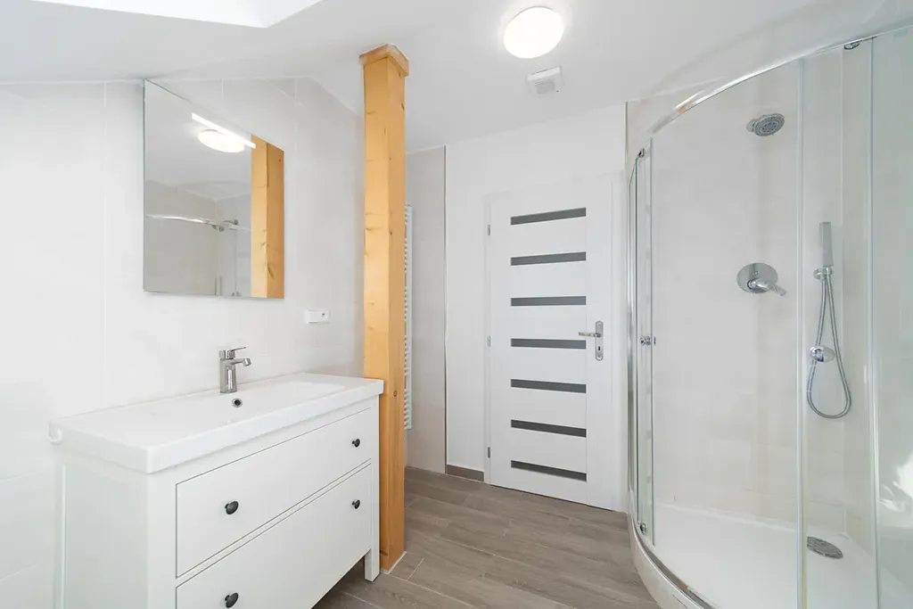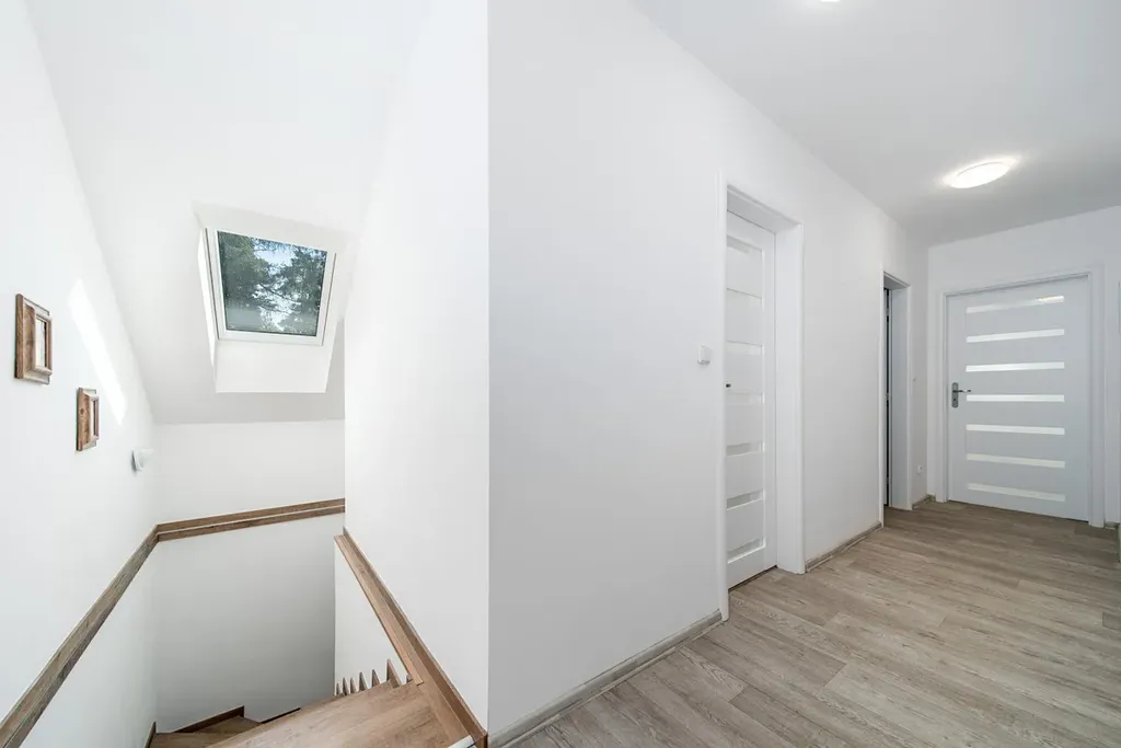 Dům disponuje dvěma koupelnami, dvěma toaletami, prostornou šatnou a komfortními obytnými prostory, které nabízí dostatek místa pro celou rodinu. Vytápění je zajištěno plynovým kondenzačním kotlem a atmosféru domova podtrhují krbová kamna. Na podlahách najdete kvalitní parkety, vinyl a dlažbu.