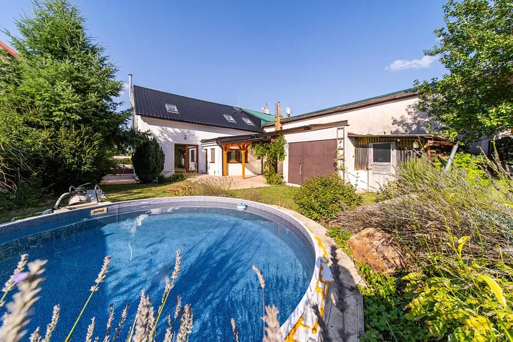 Součástí domu je krásná zahrada s bazénem, kde si můžete užívat letní dny v soukromí. Zahrada nabízí dostatek prostoru pro relaxaci, rodinné aktivity i zahradničení.
