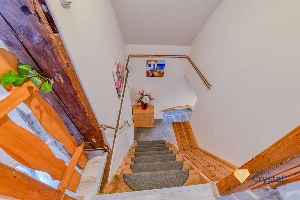 První patro tvoří chodba, prostorná kuchyň s jídelnou, obývací pokoj, ložnice, koupelna s vanou a WC a 2 dětské pokoje, celkem o rozloze cca 130 m2, viz. půdorys ve fotogalerii.