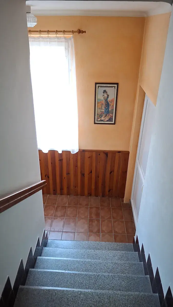 Rodinný dům zastavěné plochy 116 m2 má dvě nadzemní podlaží, jedno podzemní podlaží a nevyužité podkroví. Ve zvýšeném přízemí domu je jedna bytová jednotka o velikosti 2+1 s teráskou (sociální zařízení se sprchovým koutem) a v prvním patře je další bytová jednotka o velikosti 2+1 (v kuchyni není osazena kuchyňská linka a sociální zařízení je s vanou). V mezipatře jsou dvě lodžie. Jedna s výhledem do zahrady a druhá je situována směrem ke vstupu a vjezdu. Podkroví nevyužité a prostorné, s možností vestavby. V suterénu je kotelna, sklep a prodejna se zázemím s umyvadlem přístupná samostatným vchodem přímo z přilehlé ulice. Prodejna vyžaduje rekonstrukci.