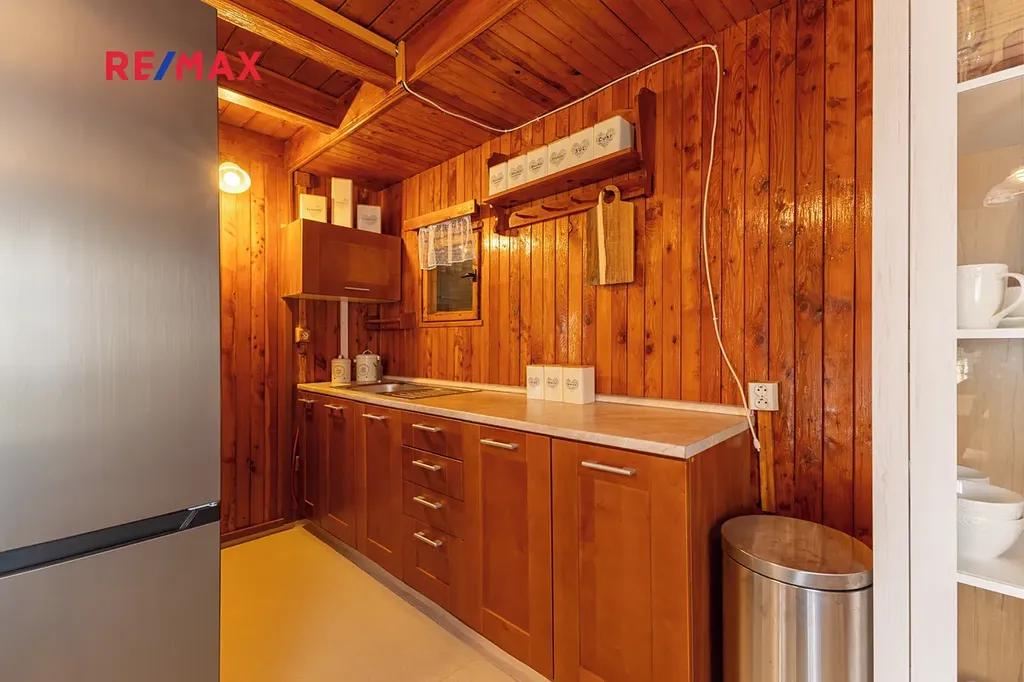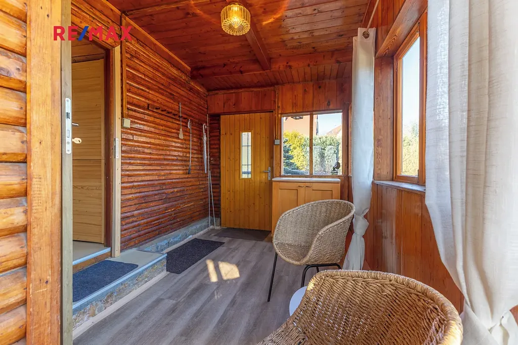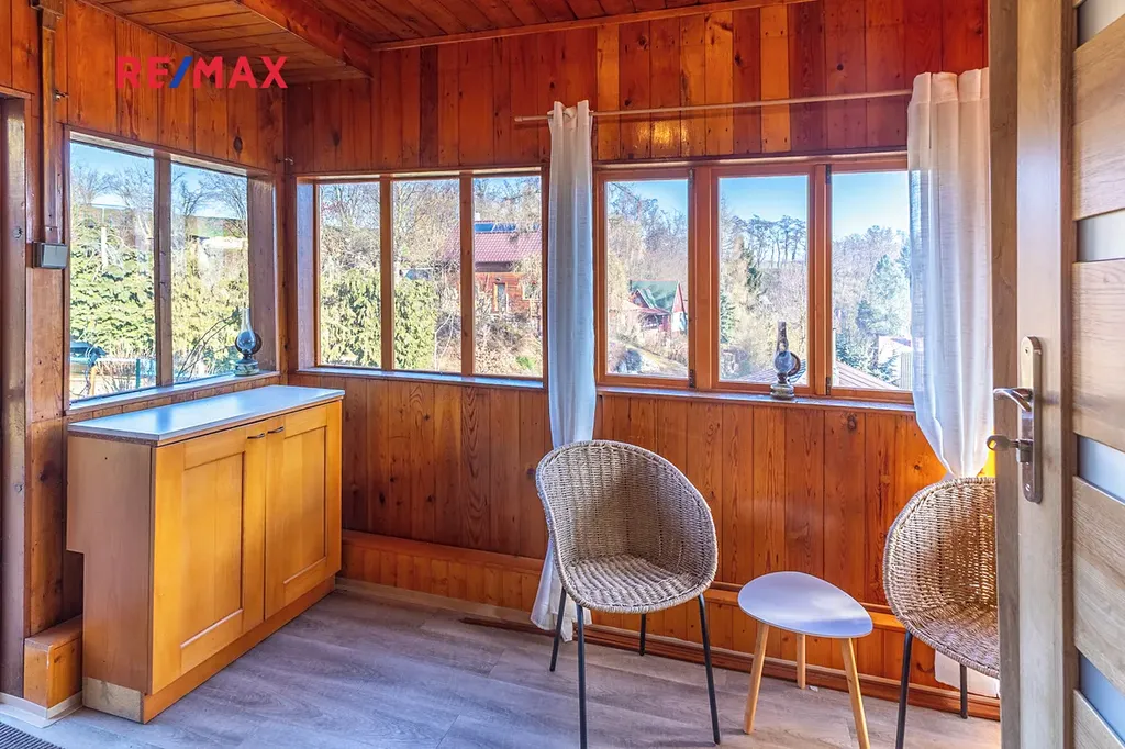 Nabízíme k prodeji krásnou dřevěnou chatu na kamenném základu v jedné z nejpůvabnějších lokalit v okolí Prahy – v obci Okoř, proslulé romantickou krajinou a dominantou zříceniny Hrad Okoř.