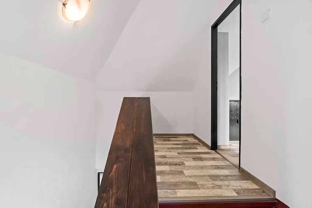 Dispozice domu je řešena velmi účelně. V přízemí se nachází obývací pokoj, kuchyně a na chodbě komora vhodná jako praktický úložný prostor. V patře jsou dvě ložnice, které poskytují dostatek soukromí a klidné zázemí pro rodinu.