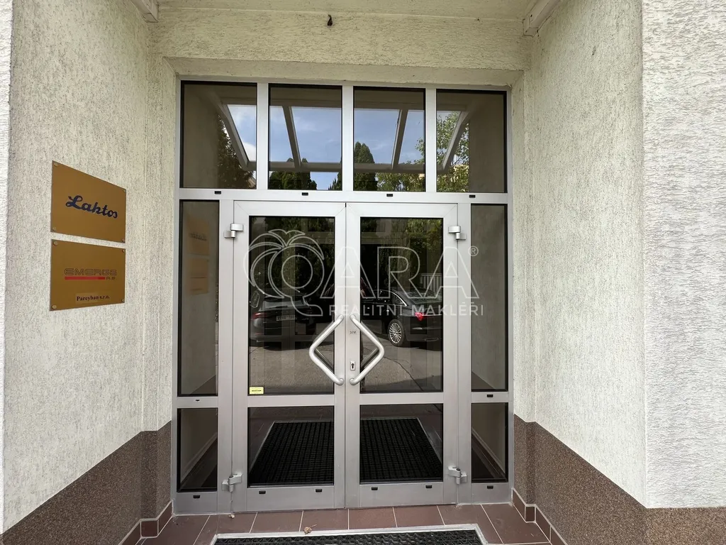 V areálu budovy je možno pronajmout 5 parkovacích míst za cenu jednoho 2.000,- Kč/měs.,