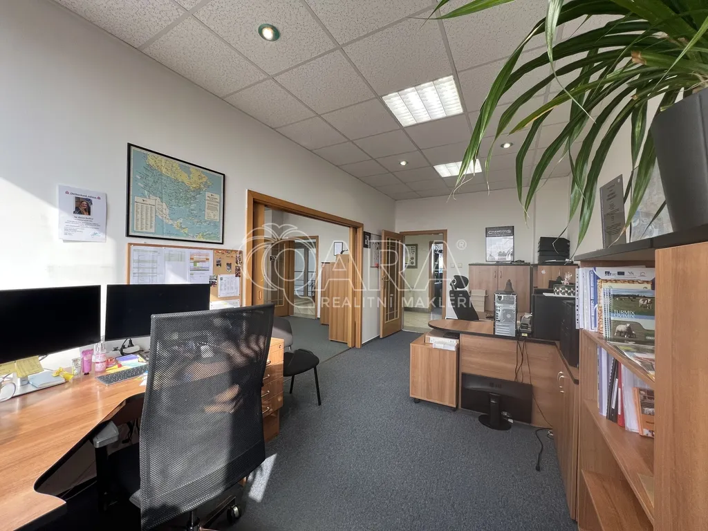 Jde o 9 moderních, plně zařízených prosklených kanceláří se zázemím ( plně vybavená kuchyňka, pánské a dámské toalety, serverovna), kde je možno zřídit až 31 pracovních míst. Součástí inzerátu je 3D prohlídka (stisknout kolečko "spustit prohlídku"), jejíž součástí je i 3D půdorys.