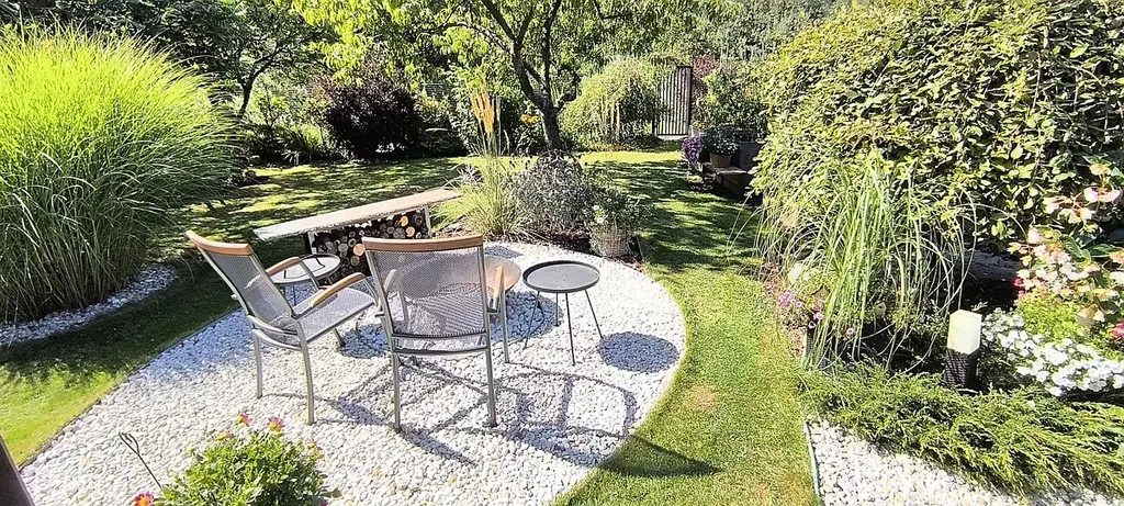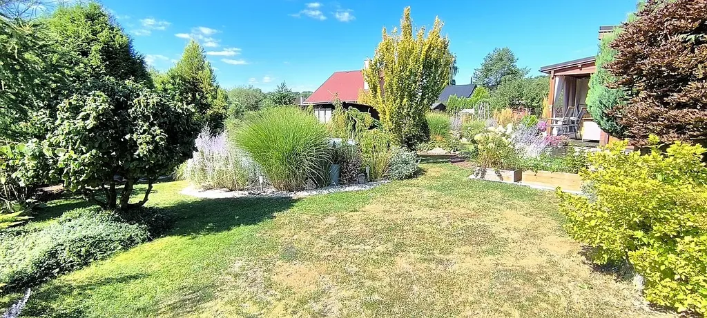 Skutečným klenotem této nemovitosti je velmi dobře a vkusně udržovaná zahrada o výměře 782 m². Najdete zde okrasné dřeviny, ovocné stromy i praktické zvýšené záhony pro vlastní pěstování.