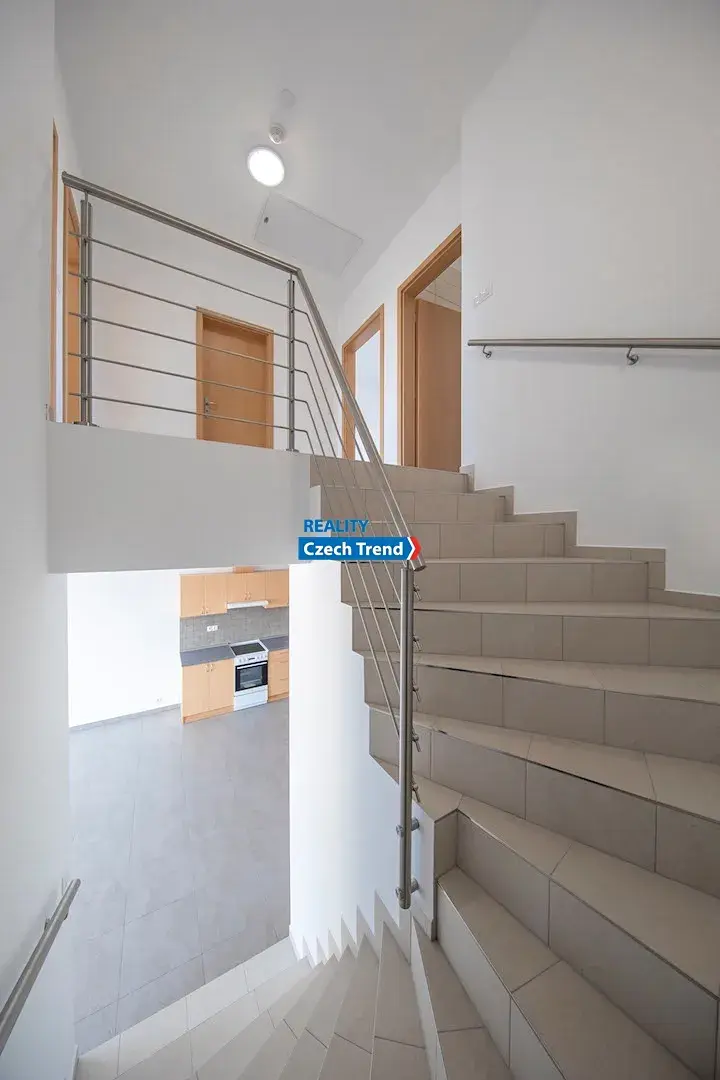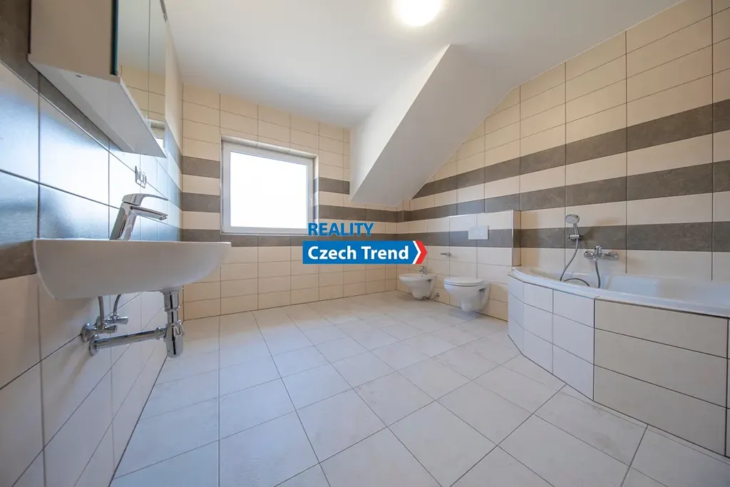 Pronájem novostavby moderního, rodinného domu za cenu bytu. Nabízíme k pronájmu řadový, rodinný dům, 4+kk s garáží a venkovním parkovacím stáním na ulici Šípková v Olomouci. Velmi nízké nájemné je nižší, než nájemné srovnatelně velkého bytu. Měsíční zálohy na elektřinu vč. topení jsou cca 5.000,- Kč, na vodu cca 1000,- Kč. Celková velikost pozemku k domu je včetně zastavěné plochy 262m². Dům je postaven z cihel Porotherm, okna trojskla, značkové armatury Hansgrohe. V přízemí domu je vstupní chodba, koupelna se sprchovým koutem, umyvadlem, toaletou a přípojkou na pračku, technická místnost s elektrickým kotlem a bojlerem na ohřev teplé vody, kuchyňský kout s kuchyňskou linkou obsahující sporák s troubou, digestoř, dřez s baterií a přípravu na myčku, obývací pokoj s francouzským oknem a vstupem na zastřešenou terasu a schodiště do patra. V patře domu jsou tři ložnice a koupelna s vanou, umyvadlem, toaletou, bidetem a přípojkou na pračku. V celém domě je na podlaze dlažba s teplovodním podlahovým vytápěním. Dům je připojen na optický kabel, rozvody internetu a TV signálu jsou v každém pokoji. V místě je veškerá občanská vybavenost a nové, oplocené, dětské hřiště. MHD v dosahu. Volný od 15.4. 2026. Kauce je ve výši dvou měsíčních nájmů, provize pro RK činí jeden měsíční nájem + DPH. Pronajímatel preferuje pracující rodinu bez domácích mazlíčků.