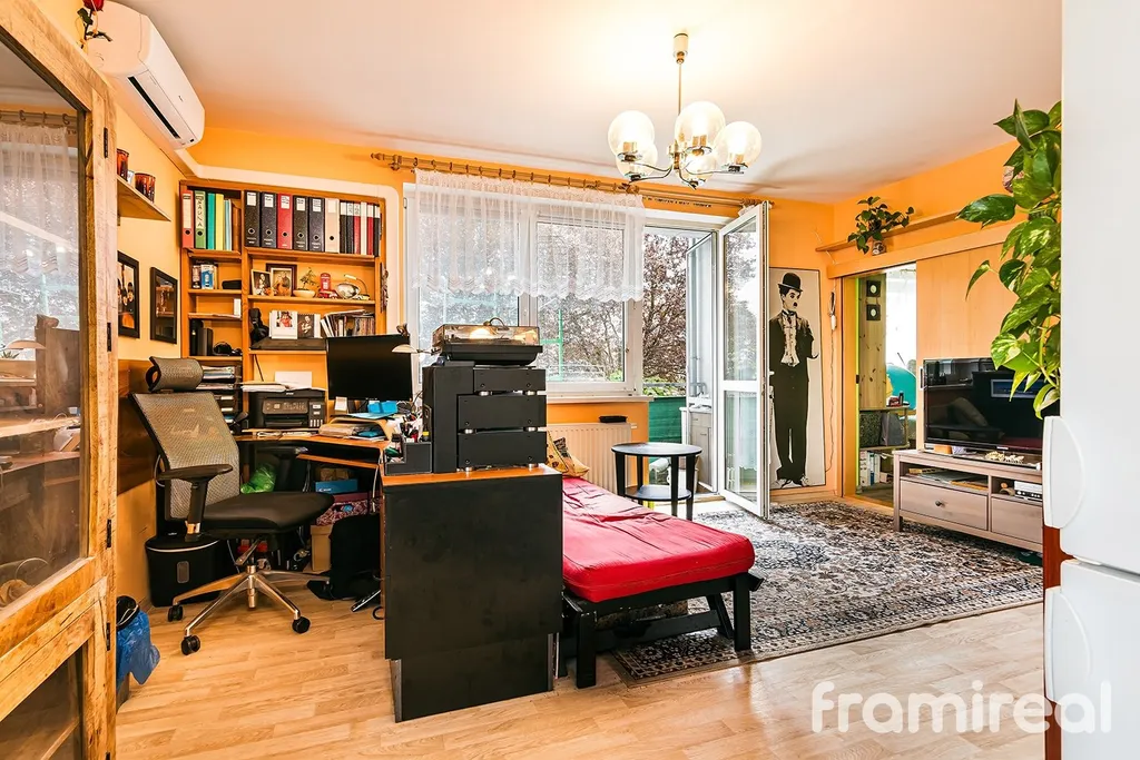 Dispozičně je byt velmi dobře řešen – obývací pokoj s kuchyňským koutem je propojený s balkonem orientovaným do klidné části a nabízí příjemný prostor pro odpočinek i společné chvíle. Ložnice je oddělená, koupelna disponuje vanou, WC je samostatné. Nechybí ani praktická komora přímo v bytě, ideální pro uložení sezónních věcí, sportovního vybavení nebo jako menší domácí sklad. Komfort bydlení zvyšuje také instalovaná klimatizace, která zajišťuje příjemné teploty i během horkých letních dní.
