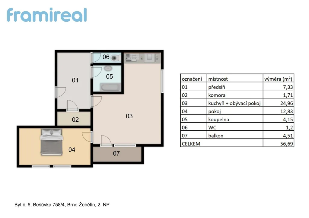 Prodej bytu 2+kk, Brno, Bešůvka, 56 m2 (ID: 2827169)