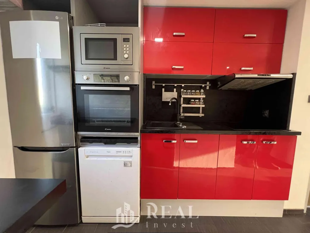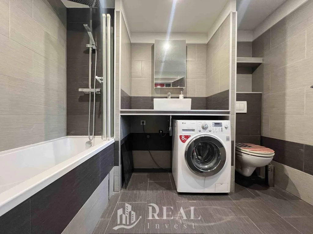 Dispozice bytu nabízí velký obývací pokoj s jídelním koutem, samostatnou ložnici, menší kuchyňský kout vhodný pro běžné vaření a koupelnu s vanou.