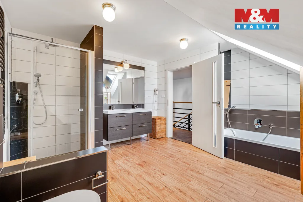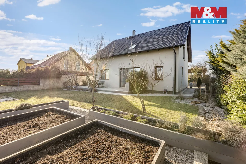 Nabízí komfort moderního bydlení, podlahové vytápění, tepelné čerpadlo, v obývacím pokoji krb, terasa, parkování na pozemku. Přízemí disponuje kuchyní propojenou s jídelnou a obývacím pokojem, koupelnou a pracovnou (pokojem), vstup na terasu a na zahradu. V prvním patře se nachází 3 samostatné ložnice a infrasauna pro příjemnou relaxaci, šatna a druhá koupelna. Velkou výhodou je rychlá dostupnost na dálnici D5 – Praha cca 25 minut, Plzeň cca 35 minut.