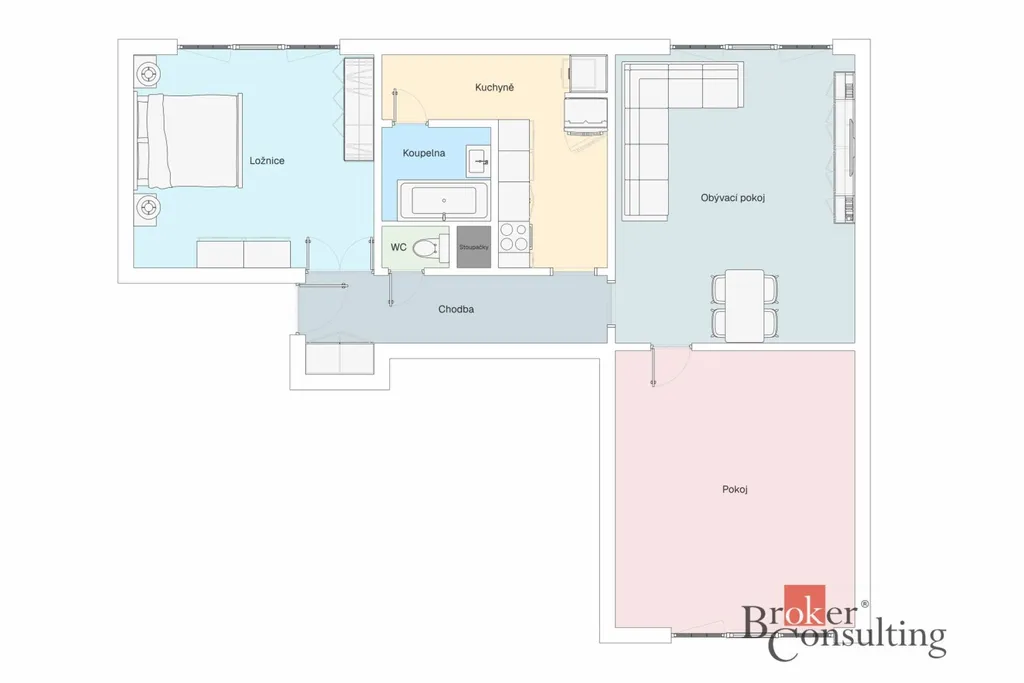 Byt prošel rekonstrukcí a nabízí praktické dispoziční řešení vhodné zejména pro rodinné bydlení. Velkou výhodou je orientace místností – kuchyň, ložnice a obývací pokoj jsou orientovány na západ, zatímco dětský pokoj směřuje na východ, což zajišťuje dostatek přirozeného světla během celého dne.