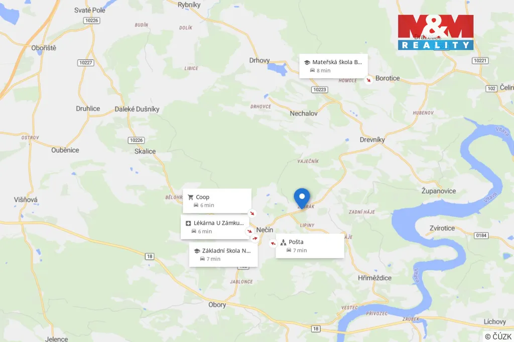 Dům je stavebně v dobrém stavu, nová plastová okna, připraven k okamžitému nastěhování nebo případným úpravám dle vašich představ, je třeba počítat s vybudováním nove kuchyně. Tato nemovitost je ideální pro vetší rodinu hledající klidné bydlení v krásnem prostředí s dobrou dostupností do okolních obcí. V Nečině je škola, školka, obchody, restaurace, fotbalové hřiště, jízdárna. Do Dobříše je to pouhých 10 km, kde je kompletní občanská vybavenost a nájezd na dálnici D4, odkud jste autem v centru Prahy za 30 minut. Rekreační oblast Županovice leží cca v 7 km.