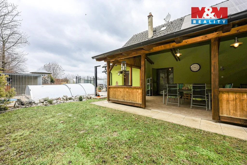 Nabízíme prostorný, velmi útulný rodinný dům na pozemku s rozlohou 762 m² v klidné části obce Kučerov s užitnou plochou cca 150 m². Dispozice zahrnuje dvě nadzemní podlaží. Denní část v 1NP nabízí kuchyň s obývacím prostorem, z kterého se vchází na zastřešenou terasu, která je obohacena o posezení, gril a udírnu. K příjemnému posezení můžete využít i zimní zahradu s topnými panely. V přízemí se nachází technická místnost, samostatné WC a garáž. Ve 2NP jsou tři samostatné pokoje, koupelna, šatna a druhé WC. Z dětských pokojů se vstupuje na terasu. Celý dům má podlahové vytápění, bojler pro ohřev vody a fotovoltaiku. Pozemek, díky velikosti, je ideální na udržování, pro milovníky i k zahradničení. Na pozemku si užijete zastřešeného bazénu a hodit se bude i kůlna. Pokud hledáte klidné místo s výbornou dostupností a příjemnou atmosférou, pak je tato nabídka určená právě Vám. Pro prohlídku kontaktujte makléřku nabídky. Zajistíme nejvýhodnější financování. Budeme se na Vás těšit.