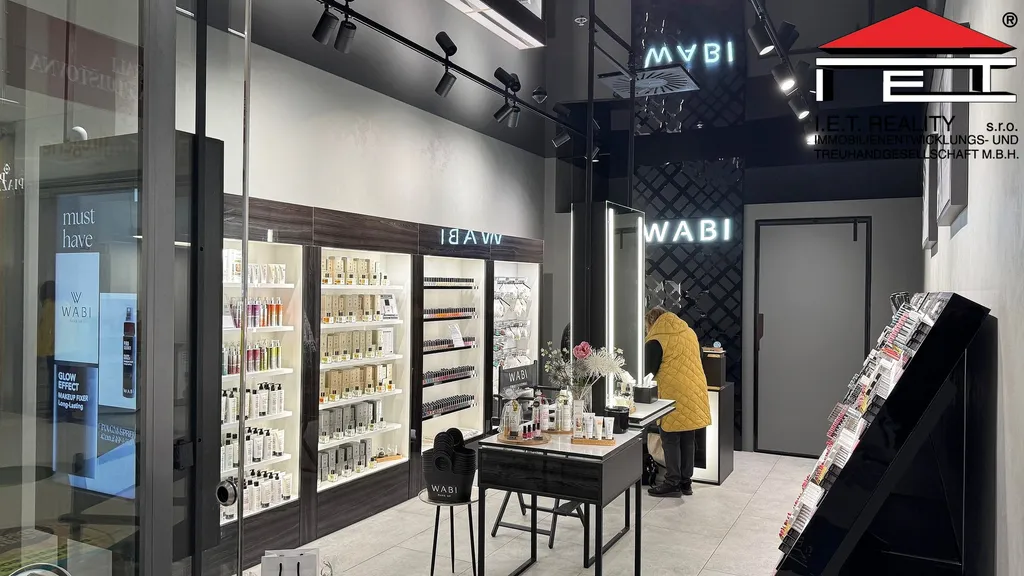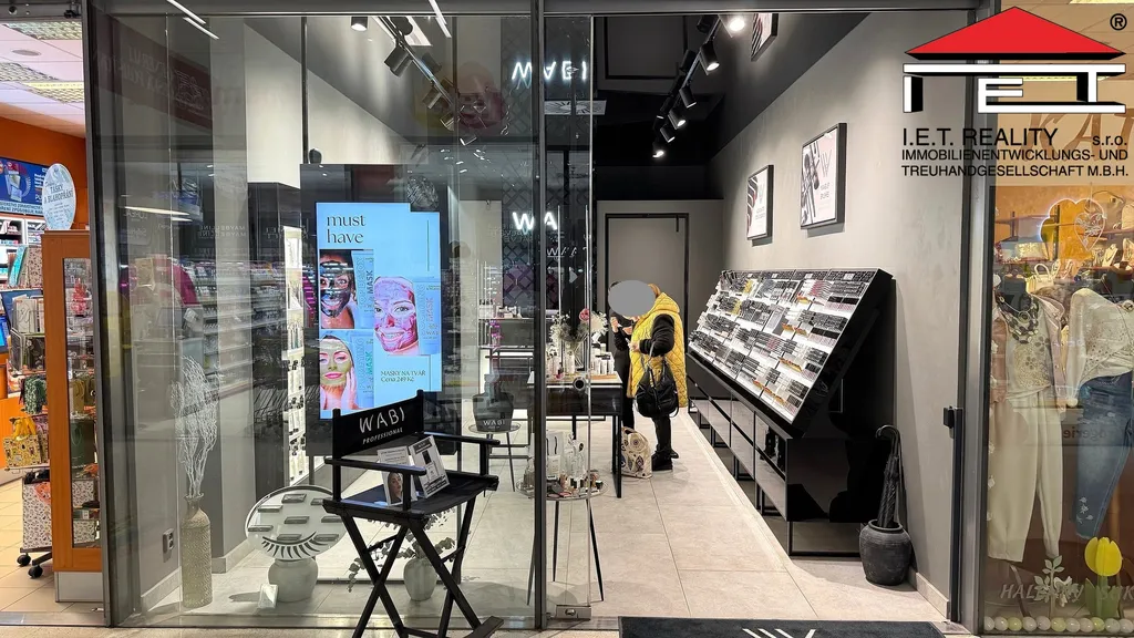 Nabízený obchod má praktický obdélníkový tvar prodejní plochy a denní místnost v vlastní kuchyňkou, prostornou výlohu, velkou reklamní plochu nad výlohou a náleží k němu i další reklamní plochy umístěné v obchodním centru-